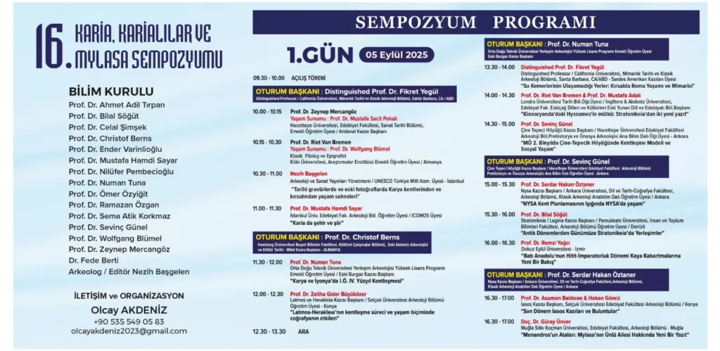 16. Karia, Karialılar ve Mylasa Sempozyumu kapsamında toplamda 34 bilim insanı sunum yapacak. Sempozyumun çevirileri ise prof. Dr. Nilüfer Pembecioğlu, Laçin Karaöz, Ebru Kılıç, Zafer Yılmaz tarafından gerçekleştirilecek.
