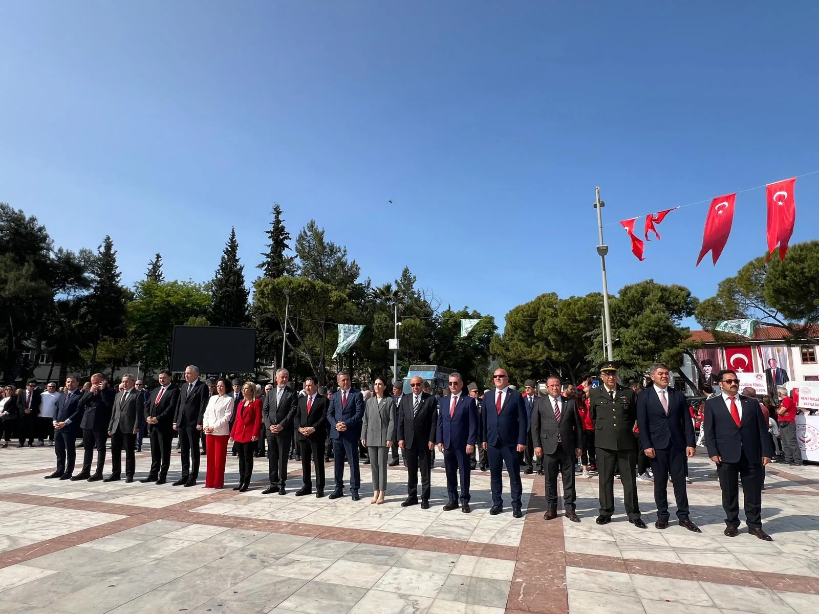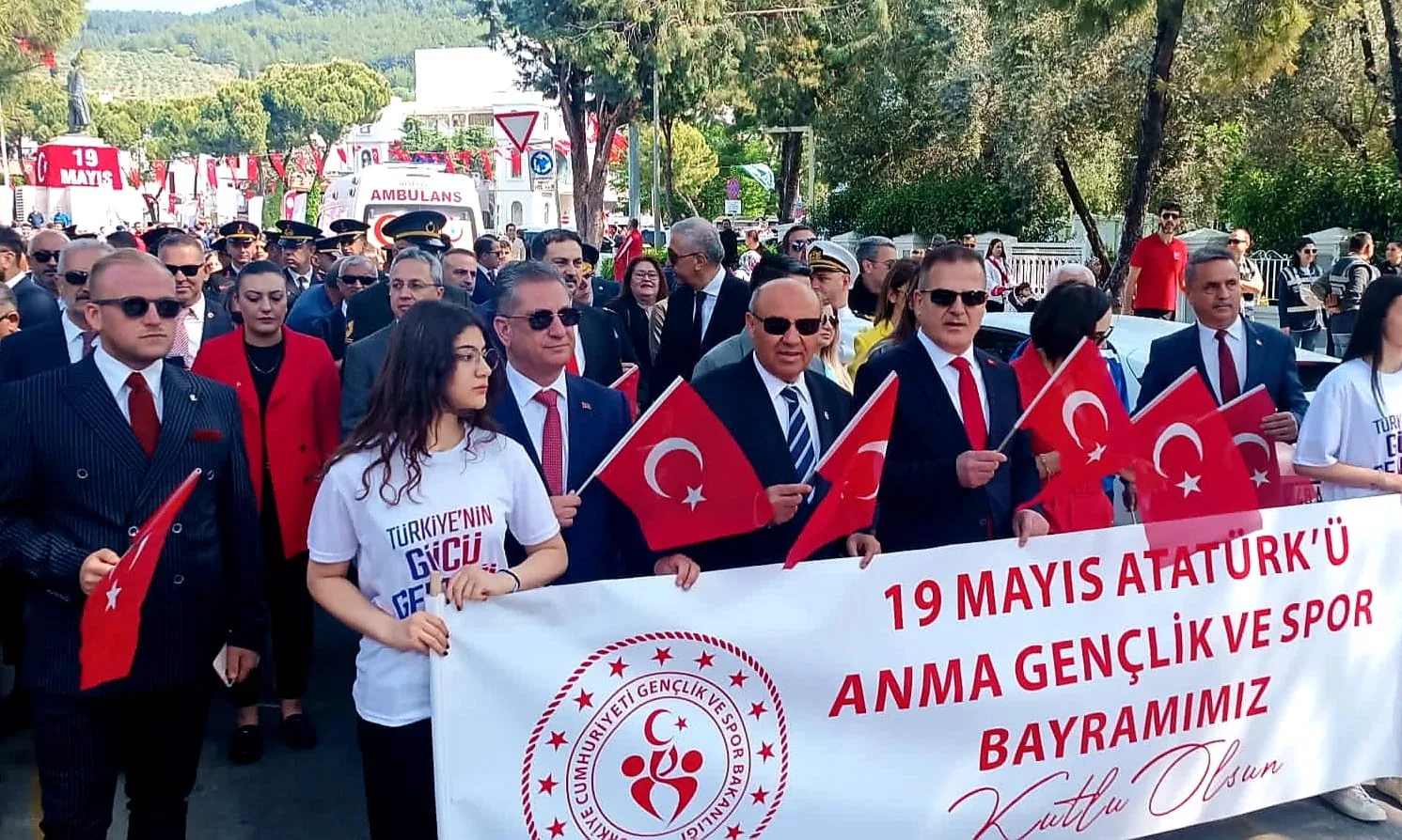 Menteşe Cumhuriyet Meydanı Atatürk Anıtı’na çelenk sunumuyla başlayan program, Hava Kuvvetleri Komutanlığı tarafından gerçekleştirilen F16 uçak gösterisinin ardından Cumhuriyet Meydanı’ndan Menteşe Kapalı Spor Salonu’na gençlik yürüyüşüyle devam etti.