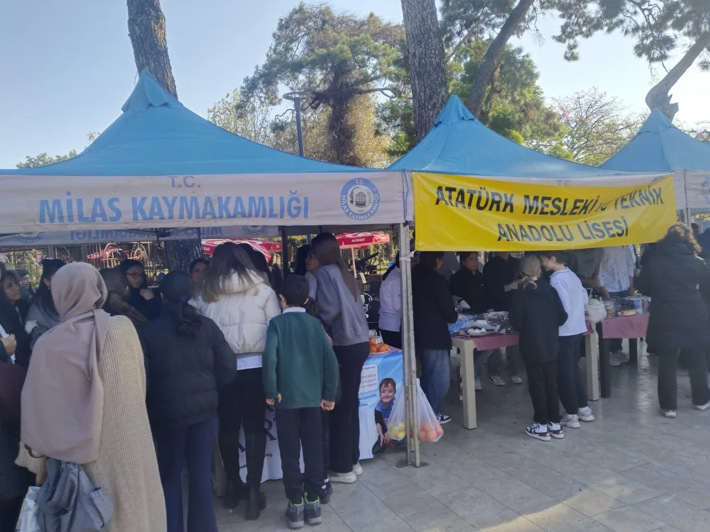Atatürk Mesleki ve Teknik Anadolu Lisesi; Yiyecek İçecek Hizmetleri, Çocuk Gelişimi, Grafik ve Fotoğraf, İnşaat Teknolojileri ve Bilişim Alanları bölüm öğrencileri ve öğretmenlerinin öncülüğünde DMD hastası Göktuğ Kurt yararına anlamlı bir kermes düzenlendi. Geçtiğimiz hafta gerçekleştirilen etkinliğin ardından bu hafta yeniden Milas Şehir Parkı önünde kurulan stantlar, sabah saatlerinden itibaren vatandaşların yoğun ilgisini topladı.