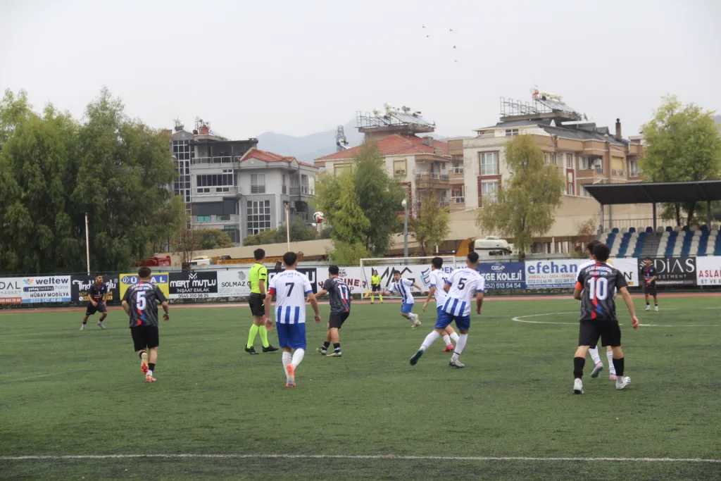 Karşılaşmanın ilk 20 dakikasında iki takım da birbirine üstünlük kurmakta zorlandı ve oyun çoğunlukla orta sahada geçti. 22. dakikada Atlas Üniversal Güllük Spor’dan Batuhan, yaklaşık 20 paslık bir organizasyonun ardından ceza sahası dışından sert bir vuruşla topu ağlara göndererek takımını 1-0 öne geçirdi.