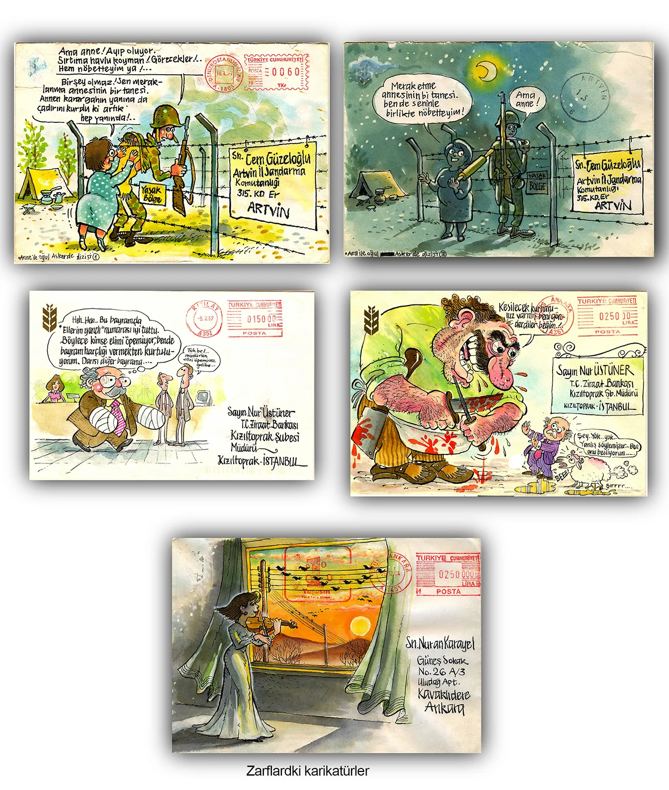 (Ben uzun yıllar bayram ve yılbaşlarında arkadaşlara gönderdiğim kartların zarflarının üzerlerine renkli karikatürler çiziyor ve öyle gönderiyordum. Sonra sergi fikri oluşunca bulabildiğim zarflardan açmış olduğum bir sergi oldu.. Dünyayı bilmiyorum ama Türkiye de bu konuda bir sergi açan tek ben varım.) 2 kişisel sergi açtım. Karikatür çalışmalarıma halen devam etmekteyim.