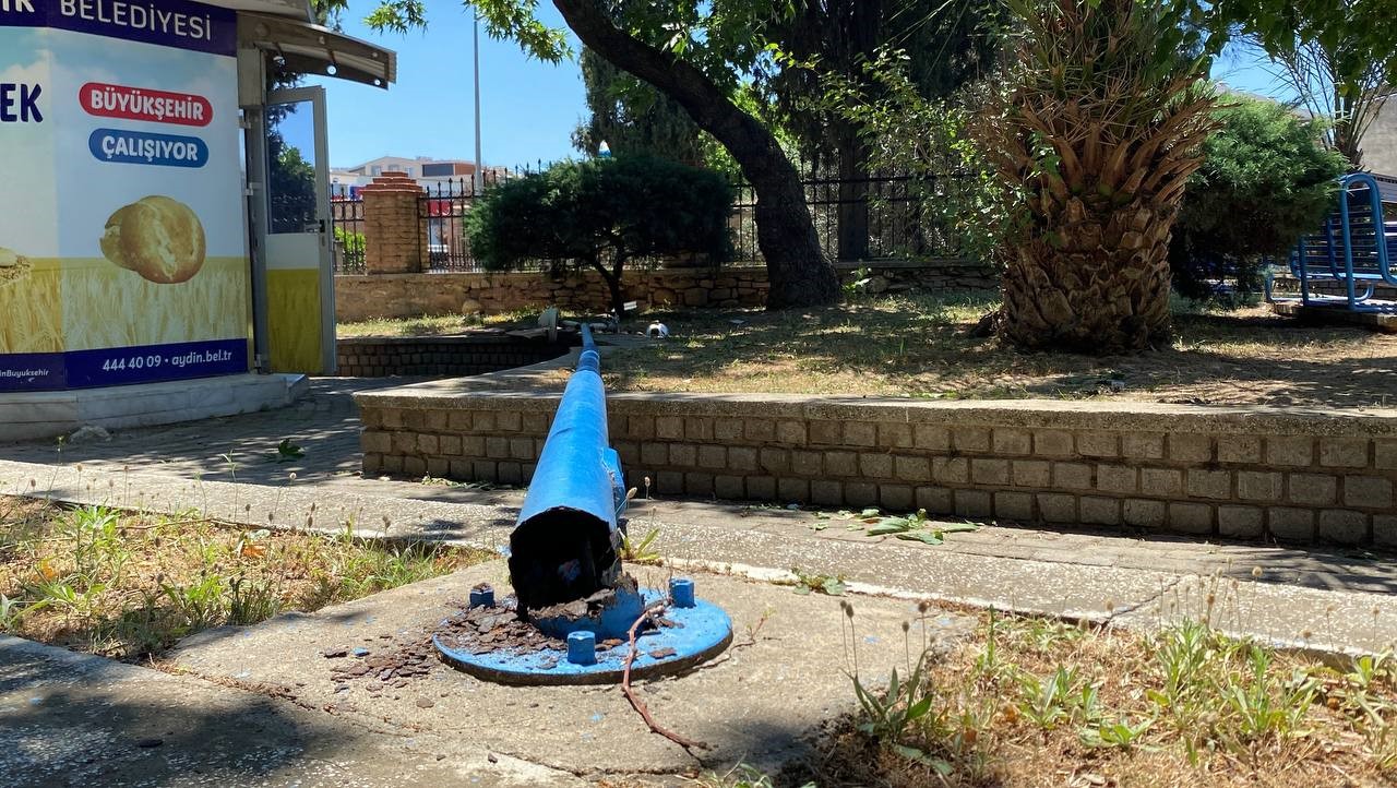 Aydın’ın Efeler ilçesinde parkta devrilen aydınlatma direği, 2 kişinin yaralanmasına neden oldu.