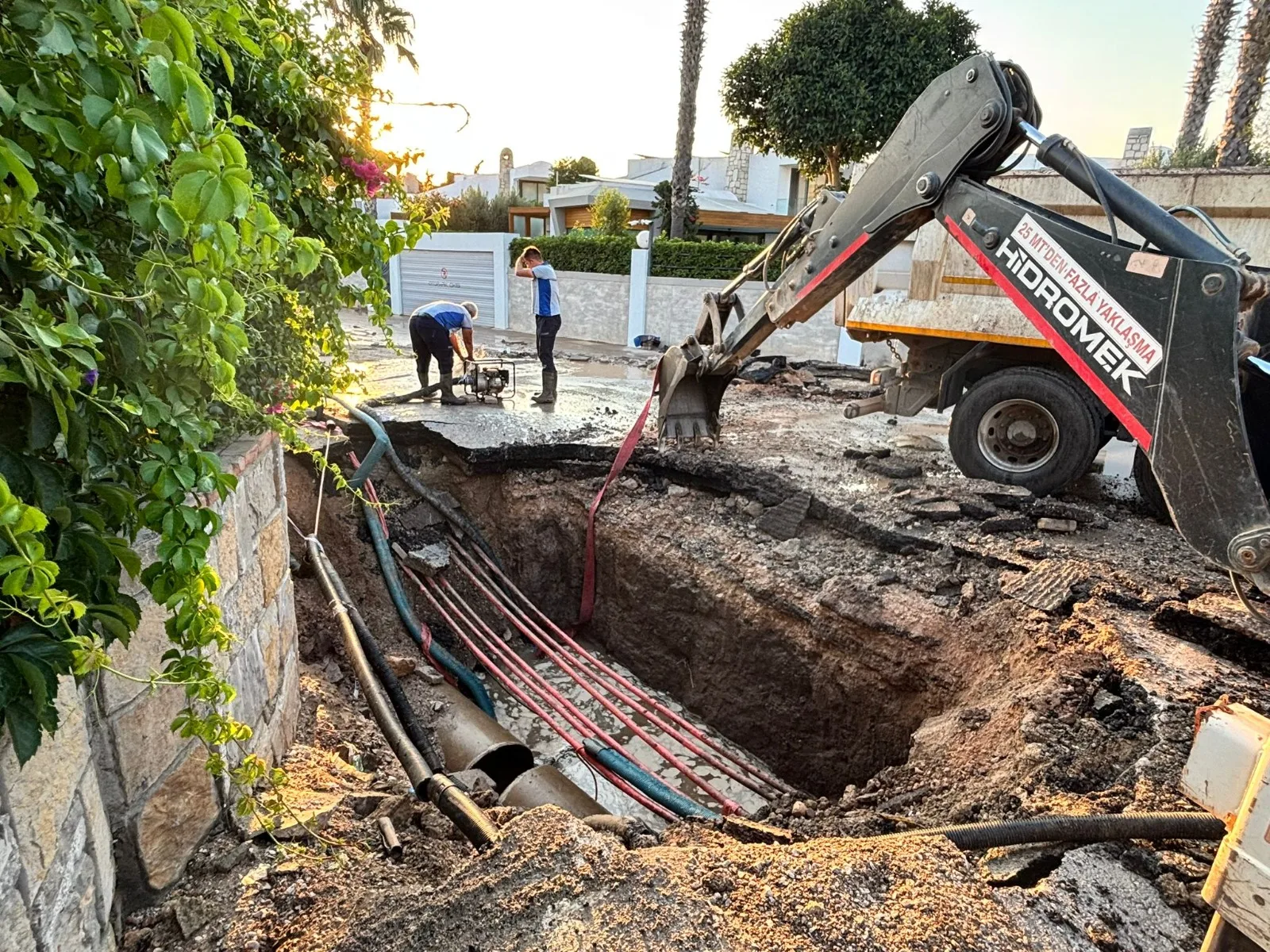 MUSKİ Genel Müdürlüğü ekipleri Bodrum İlçesi Yahşi Mahallesinde gece 01.58’de yaşanan ana içme suyu hat arızasının tamiratını 13 saatte tamamladı. Hattın bulunduğu bölgede Bodrum’a elektrik sağlayan 31 bin 500 bin watt gücünde enerji sağlayan kablolar çalışmayı oldukça zorlaştırdı.
