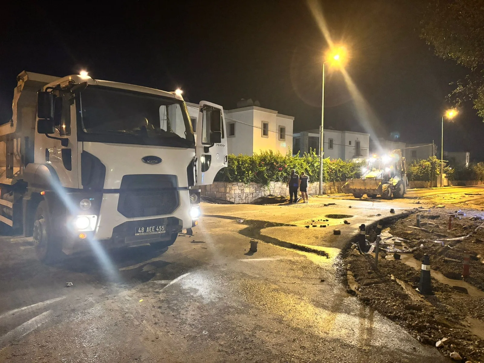 Muğla Büyükşehir Belediyesi Su ve Kanalizasyon İdaresi (MUSKİ) ekipleri Bodrum’da yaşanan ana içme suyu hat arızasını 13 saatlik çalışmanın ardından giderdi.