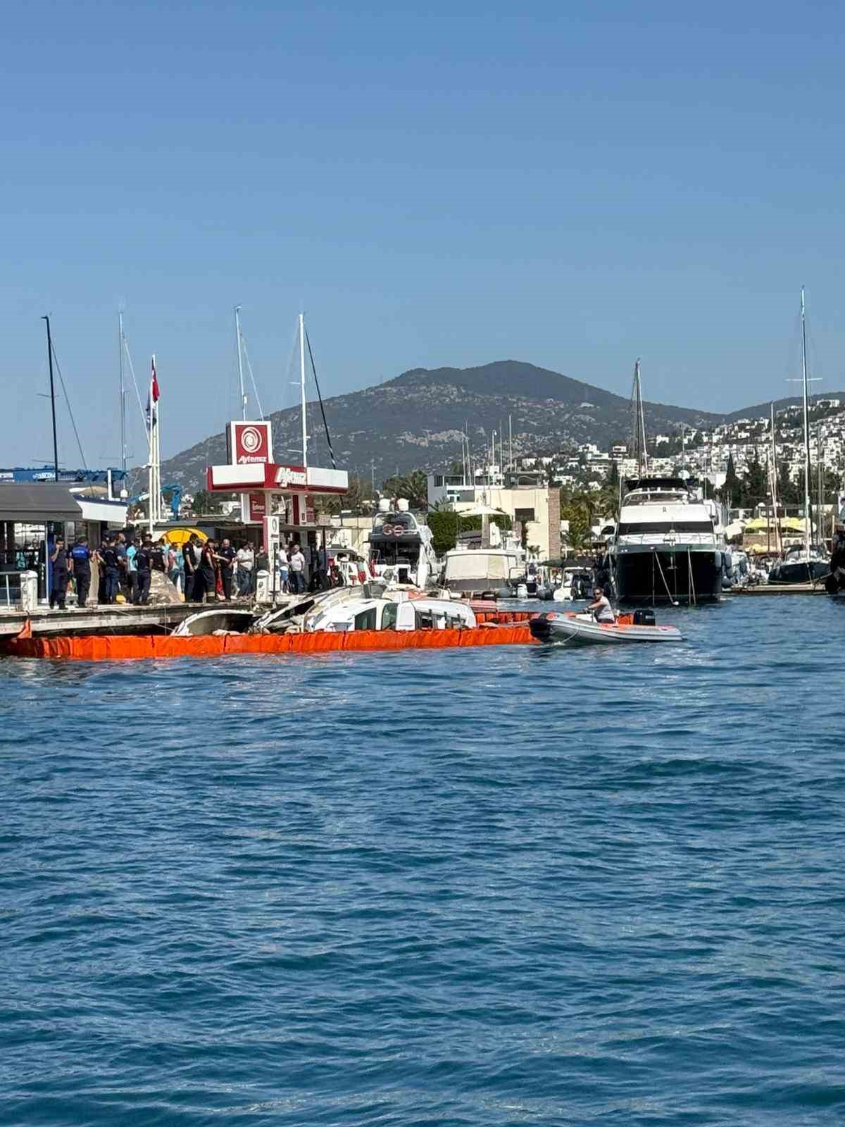 İlçe merkezindeki özel bir marinada akaryakıt istasyonuna yakıt ikmali için yanaşan teknede patlama yaşandı. Büyük bir gürültüye neden olan patlama sonrası bölgede yangın çıktı. İhbarın ardından olay yerine itfaiye, polis, sağlık ekipleri ile denizden Kıyı Emniyet, Sahil Güvenlik ve Bodrum Deniz Kurtarma ekipleri sevk edildi. Olayda 3 kişinin yaralandığı öğrenildi. Yaralılardan Mustafa Ö.’nün bacağının kırıldığı, ismi henüz öğrenilemeyen bir diğer yaralının omzunun çıktığı, Taner Ş. adlı yaralının ise genel sağlık durumunun iyi olduğu öğrenildi. Yaralılar ambulanslarla hastaneye kaldırılırken, ekiplerin bölgede inceleme çalışmalarının sürdüğü öğrenildi.