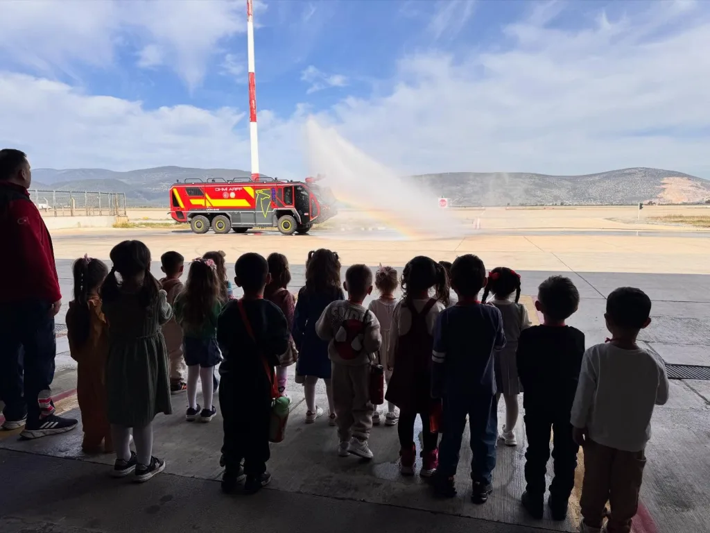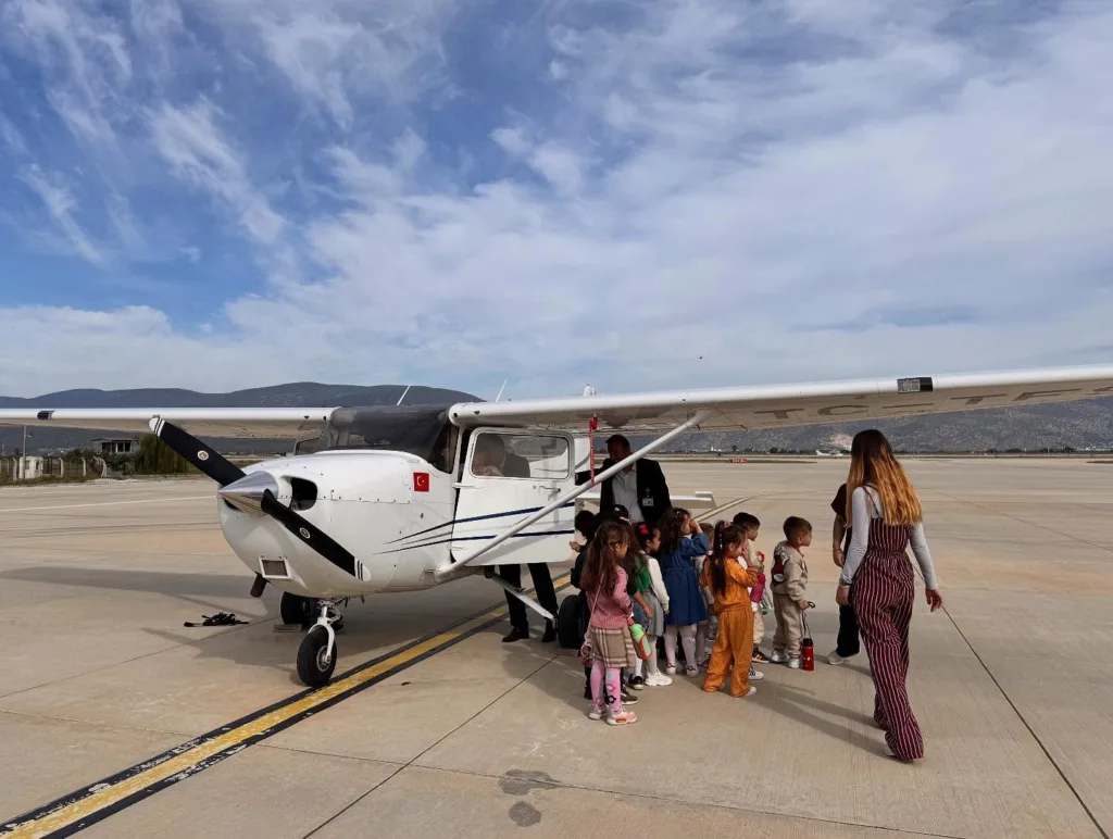Havalimanı gezisinde öğrencileri, aynı zamanda veli olan DHMİ Milas–Bodrum Havalimanı Elektronik Mühendisi Osman Kıvanç Demirbaş karşıladı. Öğrenciler, Hava Trafik Kontrolörü Özlem Ayvaz eşliğinde iç hatlar terminalini tanıma fırsatı buldu.