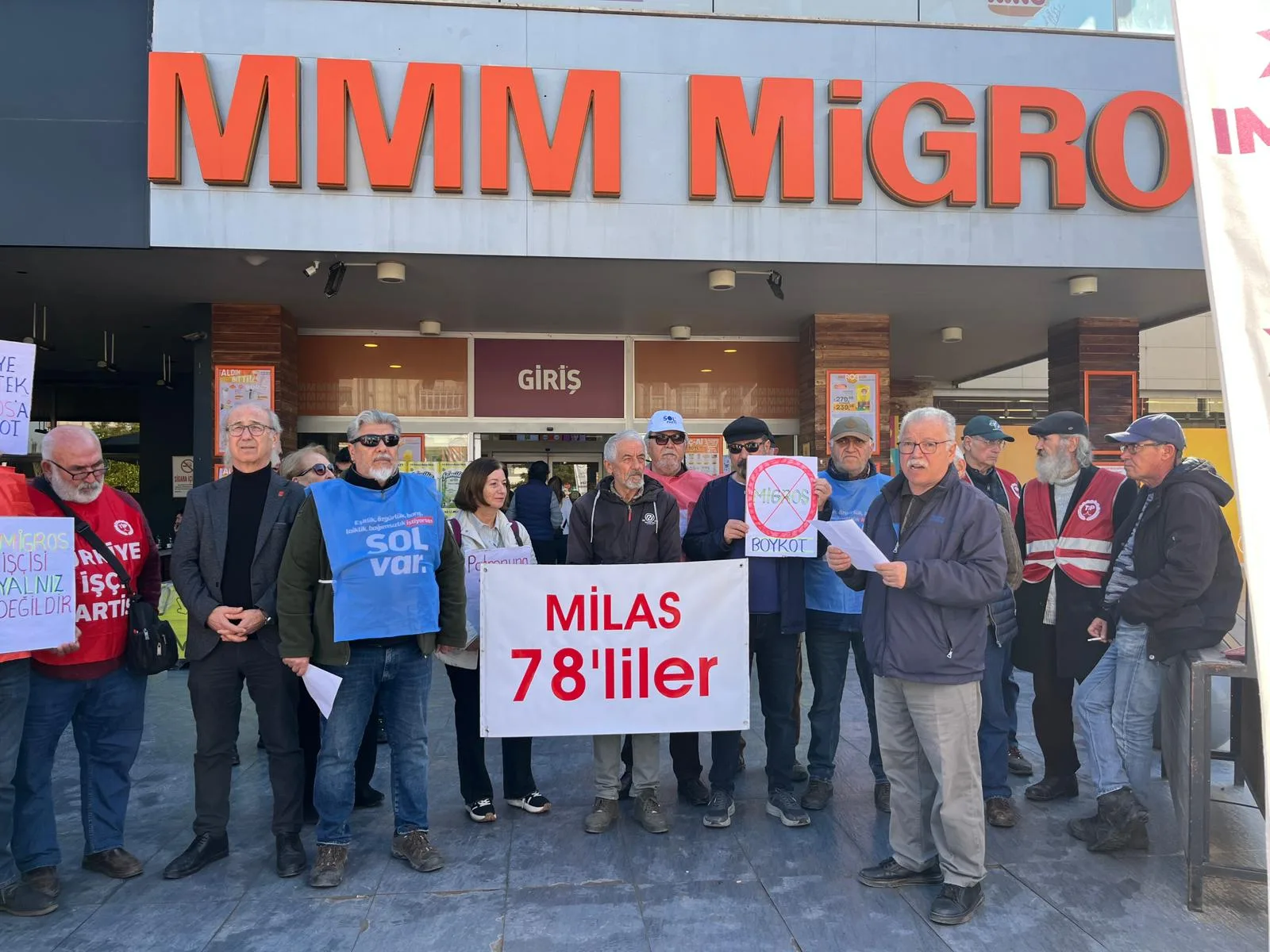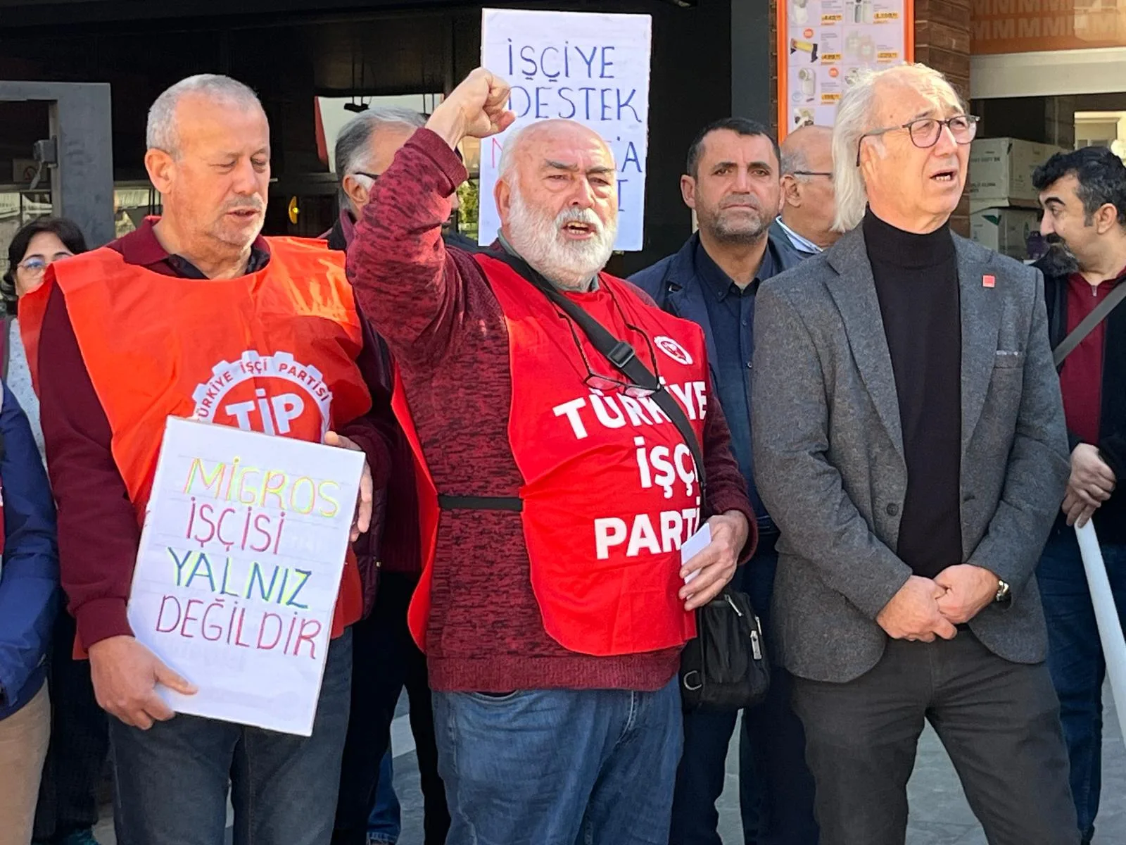 Türkiye’nin dört bir yanında Migros mağazaları önünde bir araya gelen Türkiye İşçi Partisi (TİP) üyeleri ve yurttaşlar, Migros Depo işçilerinin süren direnişine destek verdiklerini bir kez daha güçlü bir şekilde duyurdu. Yapılan açıklamada, artan hayat pahalılığı karşısında her geçen gün daha fazla yoksullaşan emekçilerin anayasal haklarını savundukları için cezalandırılmak istendiği vurgulandı.