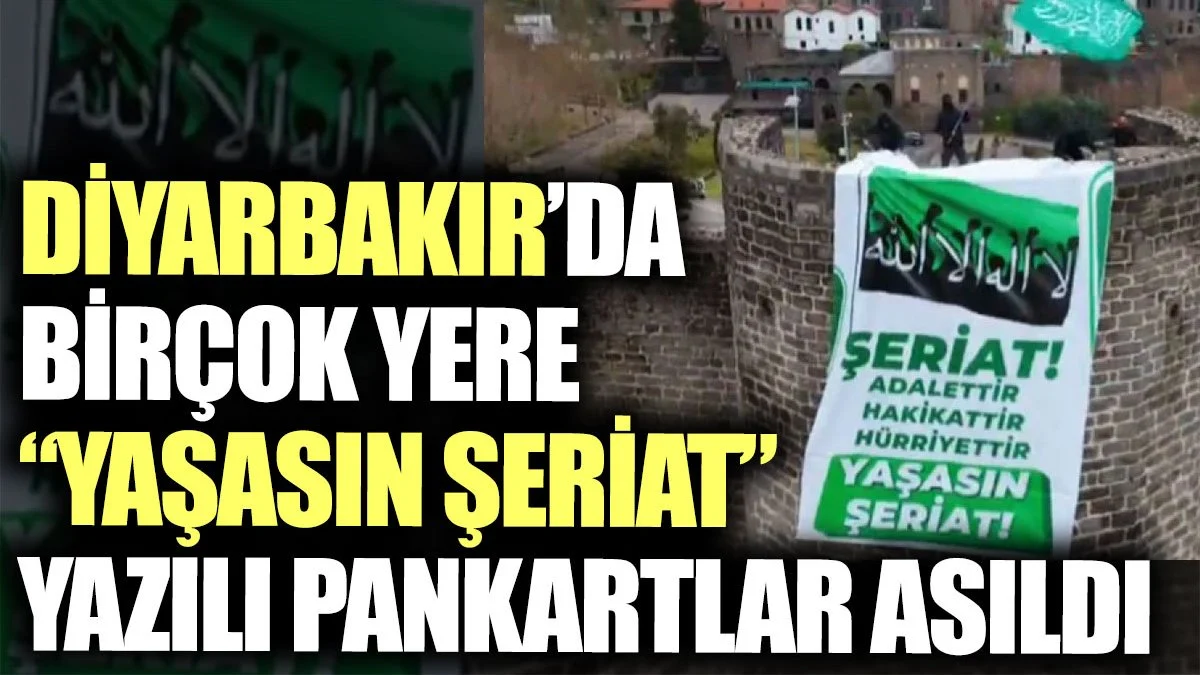 “Şeriat adalettir, hakikattir, hürriyettir. Yaşasın şeriat” cümleleri yazılı pankartın asılması…