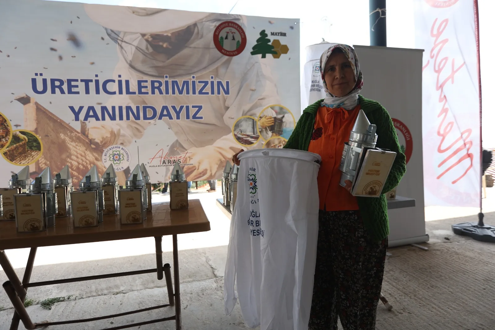 Muğla Büyükşehir Belediyesi Tarımsal Hizmetler Daire Başkanı Buket Kallem, “Muğla Büyükşehir Belediyemiz, Menteşe Belediyemiz ve Muğla İli Arı Yetiştiricileri Birliğimiz ile birlikte arı maskesi ve körük dağıtımı düzenledik. Bu projemizi 13 ilçemizde gerçekleştirmeye devam ediyoruz. Muğla, arı üretiminin merkezi konumundadır. Arıcılıkla ilgili yaptığımız her destek çok önemli. Vatandaşlarımızın hem ekipman, hem kooperatif hem de tesis desteklemeleri ile yanlarında olmaya çalışıyoruz. Sayın Başkanımız Ahmet Aras’ın üreticiye verdiği değer ile arıcılarımıza destek olmaya devam edeceğiz.” ifadelerini kullandı.