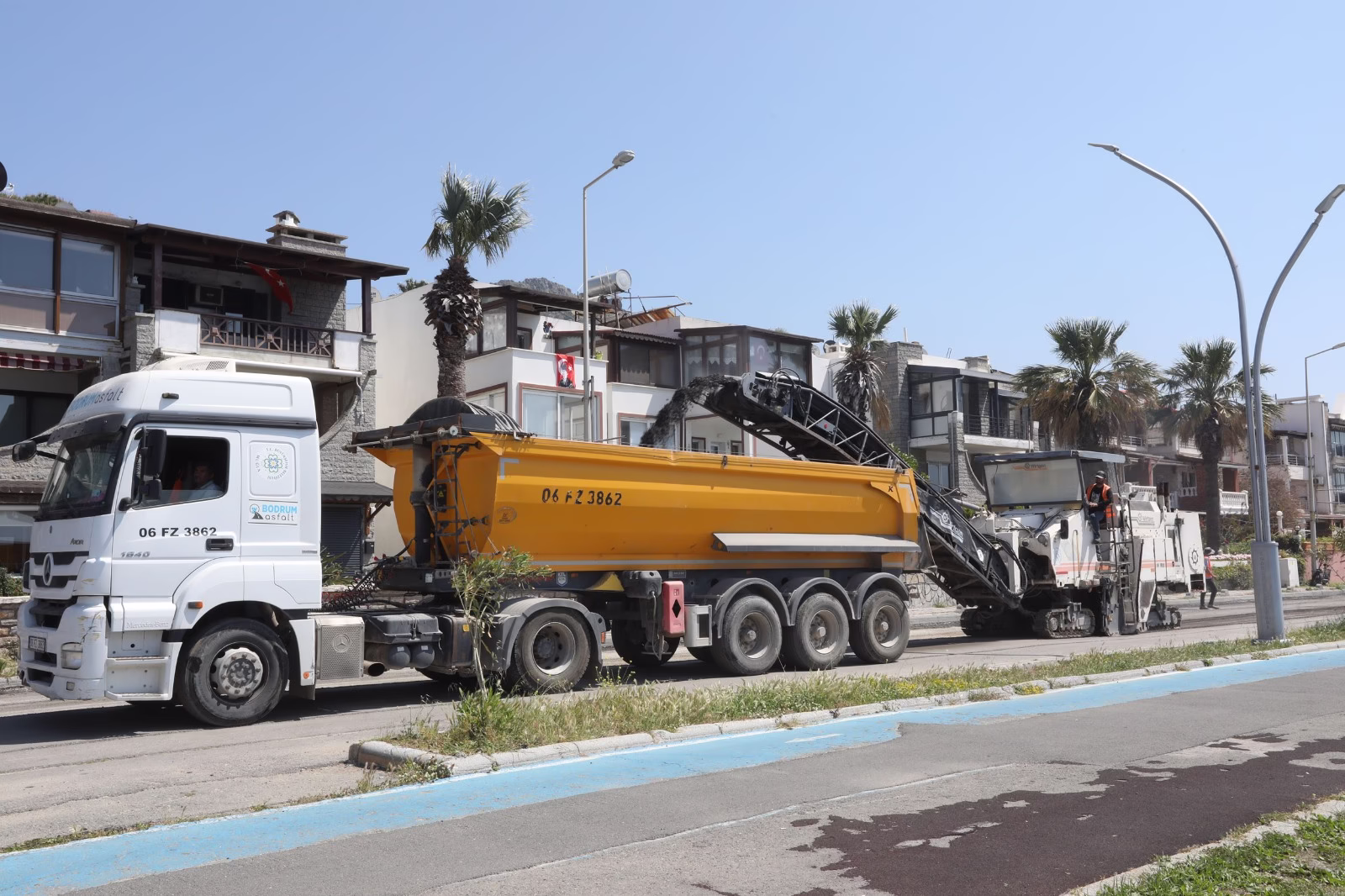 Muğla Büyükşehir Belediyesi’nde görevli İnşaat Mühendisi İpek Dela Aydın, “Bodrum ilçemiz Turgutreis Mahallemiz, Gazi Mustafa Kemal Bulvarında vatandaşlarımızın can, mal ve trafik güvenliğini iyileştirmek aynı zamanda halkımıza daha konforlu bir hizmet sunabilmek adına yol yapım çalışmalarımıza başladık. Yol yapım çalışmamız 2 bin 900 metre uzunluğunda olup, bulvar üzerindeki bisiklet yolu, yürüyüş yolu ve taşıt yolunu kapsamaktadır. Çalışmalarımıza mevcut kaplamanın sökümüyle başlamış bulunmaktayız. Devamında ise toplamda 10 bin 100 tonluk bir asfalt serimi yapacağız. Yol yapım çalışmamız kısa sürede tamamlanacak olup akabinde vatandaşlarımızın kullanımına sunulacaktır.