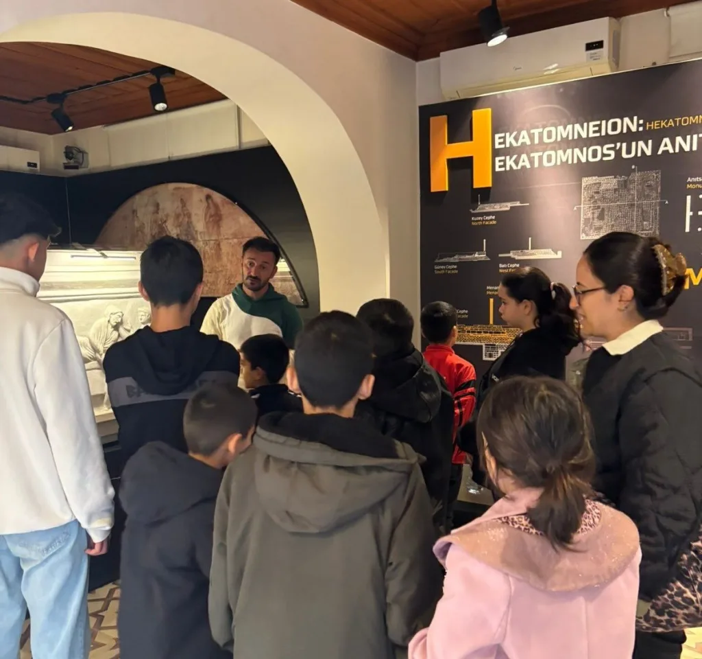 Gezi boyunca rehberler ve merkez personeli eşliğinde müzeyi gezen çocuklar, bölgede yürütülen arkeolojik çalışmalar, tarihi kalıntılar ve Milas’ın geçmişine dair önemli detaylar hakkında bilgi edindi. Müze içinde yer alan sergi alanları, Kral Hekatomnos’a ait mezar yapısı ve kazı çalışmalarından elde edilen bulgular, çocukların yoğun ilgisini çekti. Etkinlik sırasında verilen bilgiler hem tarih bilinci kazandırmayı hem de kültürel değerlerin korunması gerektiğine yönelik farkındalık oluşturmayı amaçladı.