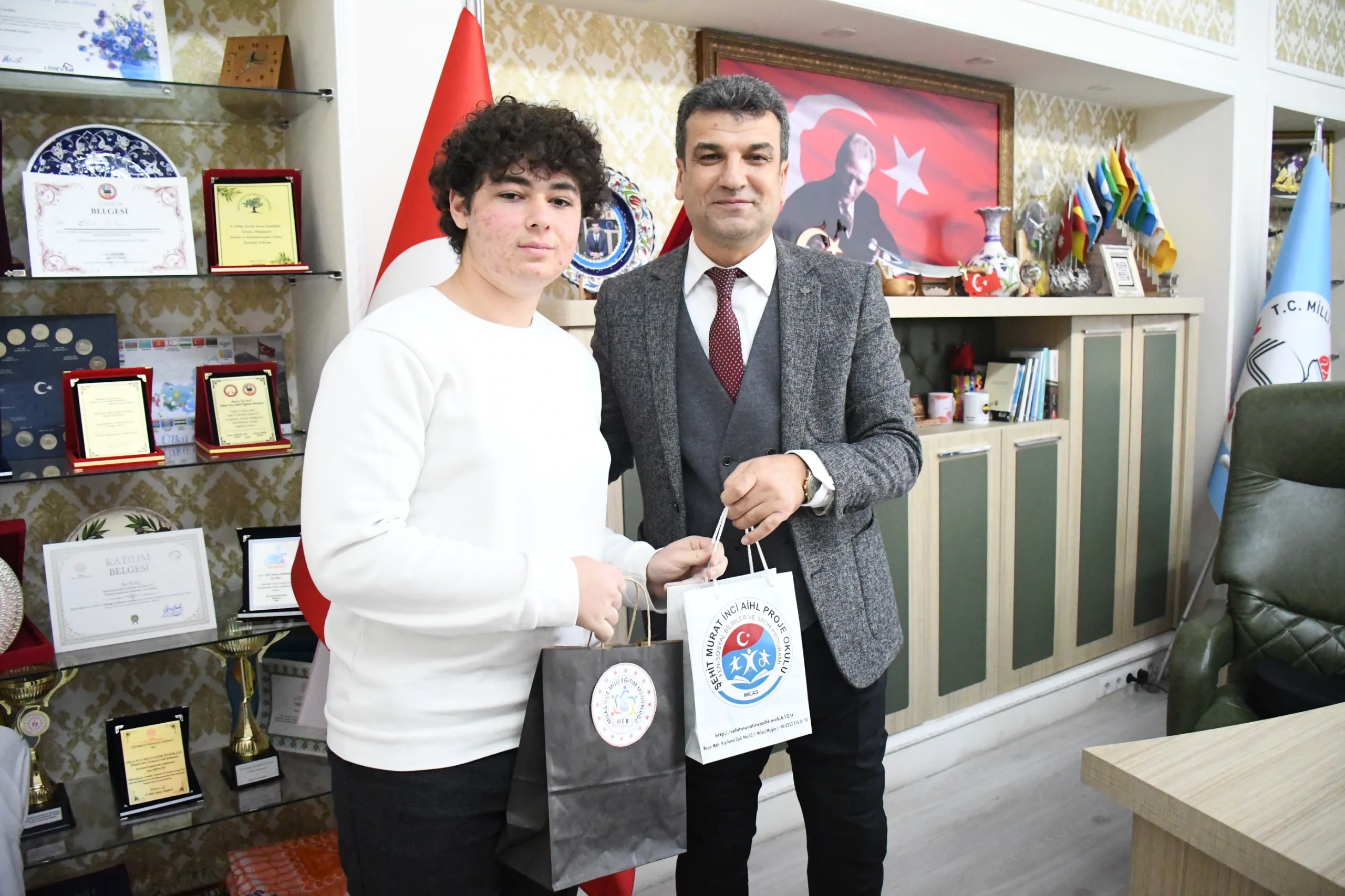 Ziyaretin sonunda İlçe Millî Eğitim Müdürü İsa Bal, dereceye giren öğrencileri bir kez daha tebrik ederek çeşitli hediyeler takdim etti.