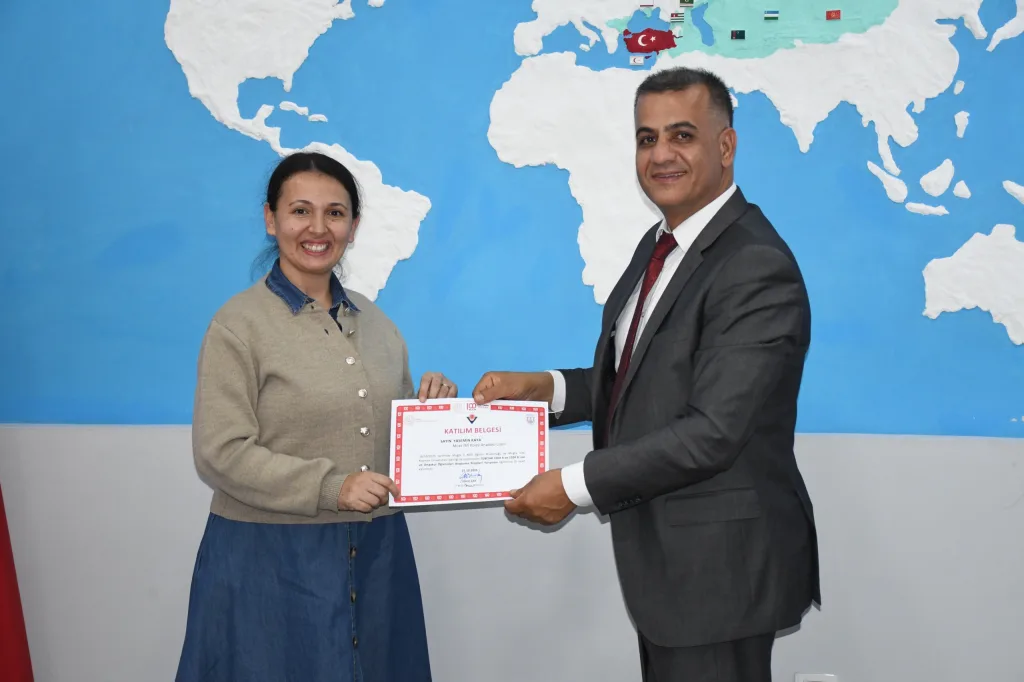 Tören, öğretmenlere belgelerinin takdim edilmesinin ardından hatıra fotoğrafı çekimi ile sona erdi.