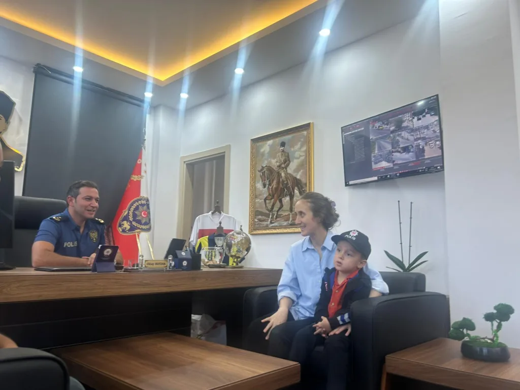 Milas İlçe Emniyet Müdürlüğü ekipleri, 4 yaşındaki Göktuğ Karakaya’ya polis kıyafeti giydirerek şehir turu yaptırdı ve anons yapma imkânı sundu. İlçe Emniyet Müdürü Oktay Boydak’ın da makamında ağırladığı Göktuğ, unutulmaz bir gün yaşadı.