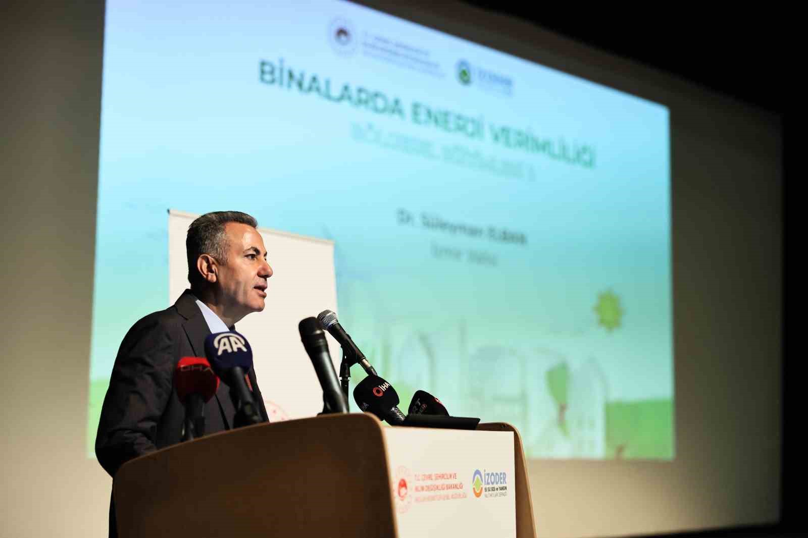 Programda konuşan İzmir Valisi Süleyman Elban, “İzolasyon ya da binalardaki enerji verimliliği konusunu gündeme getirdiğimizde daha çok kullandığımız malzemeler, malzemelerin cinsi, kalitesi, uygulama şekline yoğunlaşıyoruz. Ama olaya imar planlarından başlamak gerekiyor. Çünkü doğru yere konumlandırmadığınız, doğru hava sirkülasyonunu sağlayamadığınız, yapının doğru yöneliminin olmadığı yerlerde enerji konusunda israfın olacağını biliyoruz. Özellikle Akdeniz havzasında olan illerimizde ısınmadan ziyade soğutma yükü çok fazla. İklim değişikliğiyle birlikte bu yük iç kesimlere doğru da ilerlemeye başladı. İmar planları hazırlanırken hava akımlarına, binaların yerleşim yerlerinin konumlarına dikkat etmek gerekiyor” diye belirtti.