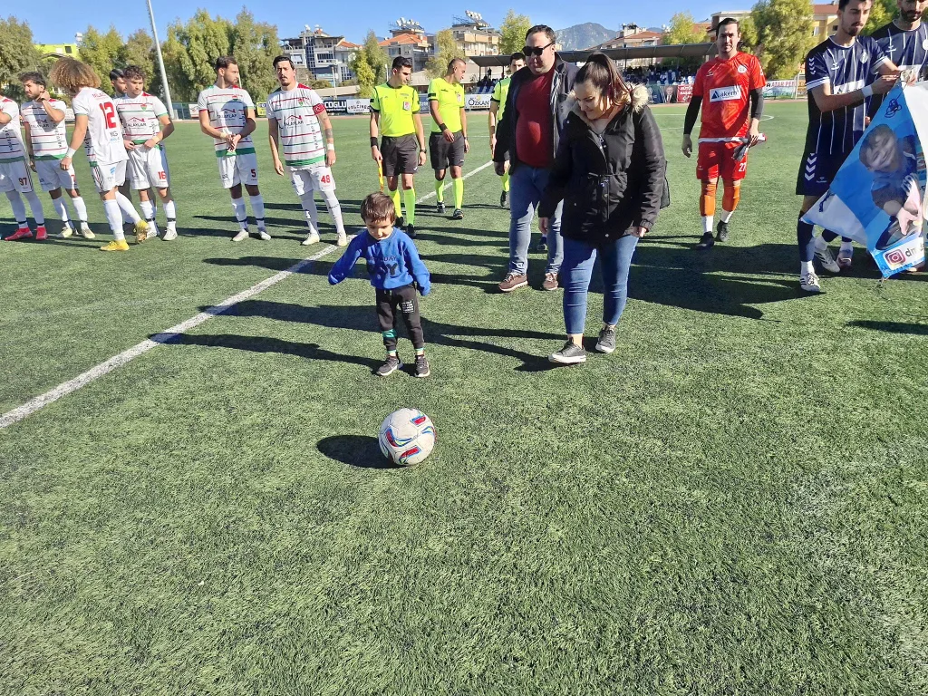 Annesi ile birlikte sahaya çıkan Göktuğ Kurt, sembolik olarak maçın başlama vuruşunu yaptı. ‘Göktuğ’lara sahip çıkalım, onlara umut olalım’ mesajıyla sahaya çıkan iki takımın futbolcularına tribünden maçı seyreden her iki kulübün başkan ve yöneticilerinin yanı sıra eski dönem Muğla İl Tarım Müdürlüğü görevini yapan Veteriner Barış Saylak ve her iki takımın taraftarı dakikalarca alkışladılar.