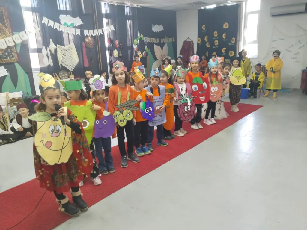 Etkinlikte, birinci sınıf öğrencilerinin her biri meyvelerin özelliklerini anlatan şiir okurken, bir grup ortaokul öğrencisi de Elazığ yöresine ait Çayda Çıra adlı halk oyununu sundu.