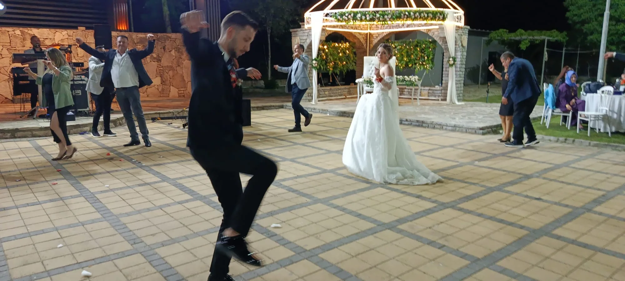 Yiğitkaya Kır Düğün Bahçesi’nde düzenlenen düğün, saat 12.00’de konuklara verilen yemek ikramı ile başladı. Gelin Müjde’nin ailesi Asiye ve Mehmet Balcı ile damadın ailesi Gülsevim ve Erdal Karakuş’un konukları karşıladığı davette, Milas’a özgü yemeklerle dostluk sofraları kuruldu.