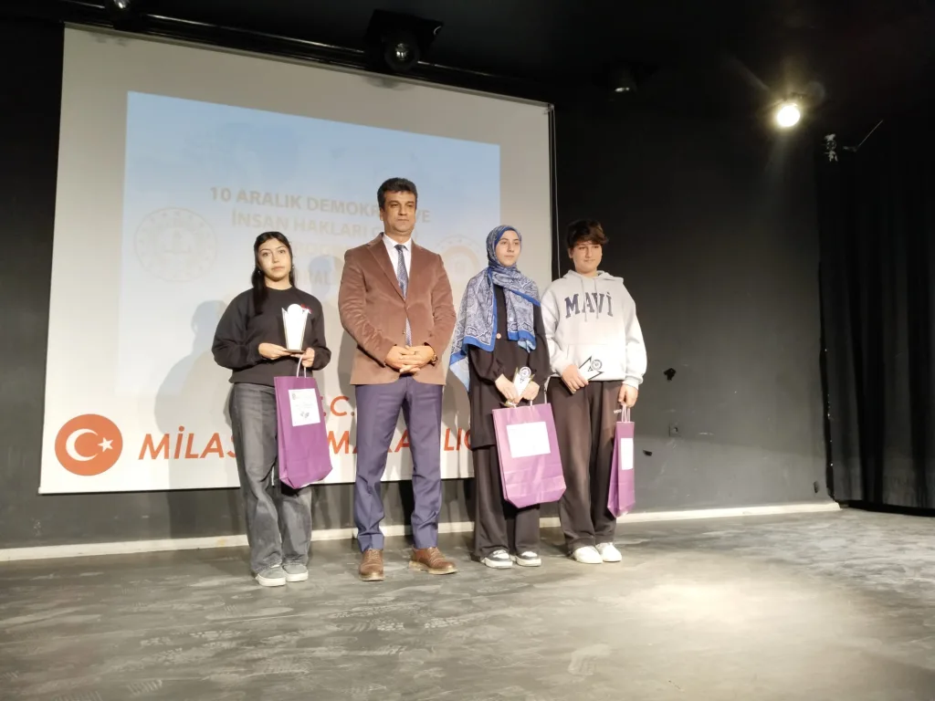 10 Aralık Dünya İnsan Hakları ve Demokrasi Haftası nedeniyle Milas İlçe Milli Eğitim Müdürlüğü’nce, İlçe Halk Eğitimi Merkezi Toplantı Salonu’nda bir etkinlik düzenlendi. Düzenlenen etkinlikte konuşan İlçe Milli Eğitim Müdürü İsa Bal, “Tarihimiz, insan hakları açısından dünyaya örnek olmuş uygulamalarla doludur. Osmanlı’da mahkemelerde adalet, ırka veya dine göre değişmezdi. Ahilik teşkilatı, çalışma hayatında işçi ve işveren haklarını asırlar önce düzenlemişti. Bugün bizlere düşen, bu mirası güncel dünyada yaşatmaktır. Hak ararken de hak verirken de vicdanı elden bırakmamak; adaleti sadece mahkeme salonlarında değil, hayatın her alanında yaşatmaktır” dedi.