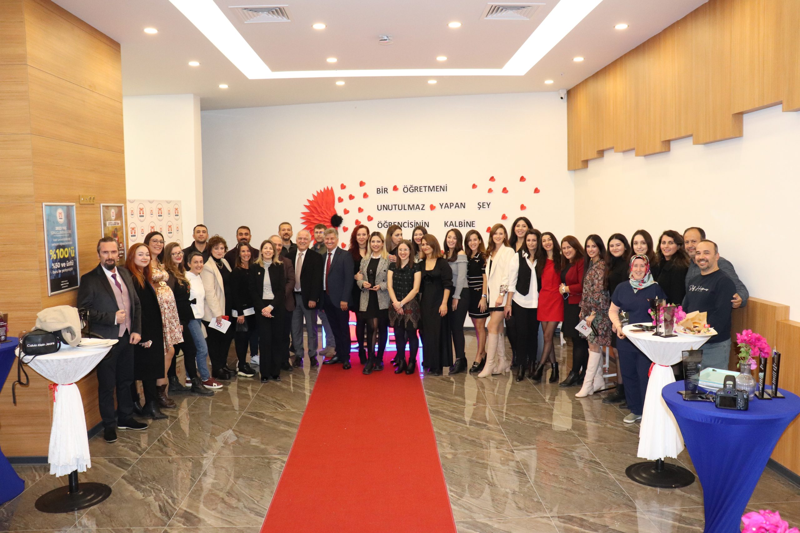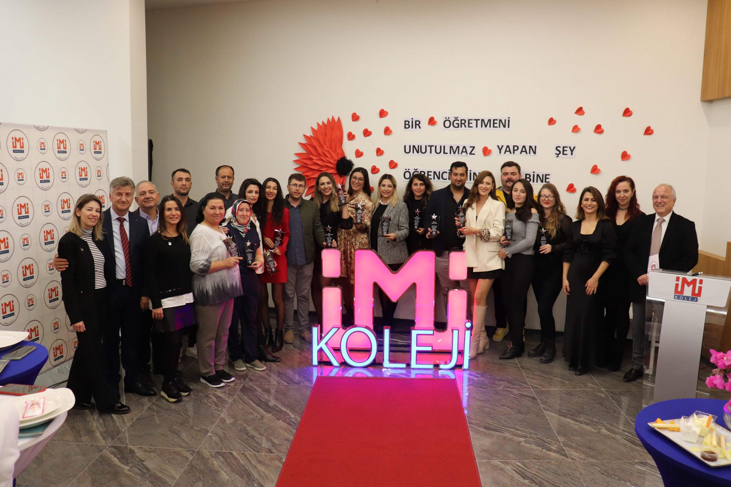 Öğretmenler Günü sebebiyle İMİ Kültür Merkezi Fuayesinde gerçekleşen kokteylde İMİ Eğitim Kurumları A.Ş. Yönetim Kurulu Başkanı Erol Gözen, Kurucu Temsilcisi Tahsin Yılmaz, İMİ Koleji Eğitim Danışmanı PDR Uzmanı Alpaslan Dartan, İlkokul Eğitim Danışmanı Serhat Akdeniz, Ortaokul Eğitim Danışmanı Gülsemin Kucba, okul müdürleri, öğretmenler ve idari çalışanlar bir aradaydı. Klasik ve popüler eserlerden oluşan keman-gitar duo dinletisinin ardından plaket töreni düzenlendi. Eğitim Danışmanı Alpaslan Dartan ve Yönetim Kurulu Başkanı Erol Gözen’in konuşmalarıyla başlayan törende kurumda 5. yılını dolduran öğretmenlere ve idari çalışanlara kıdem plaketleri takdim edildi.