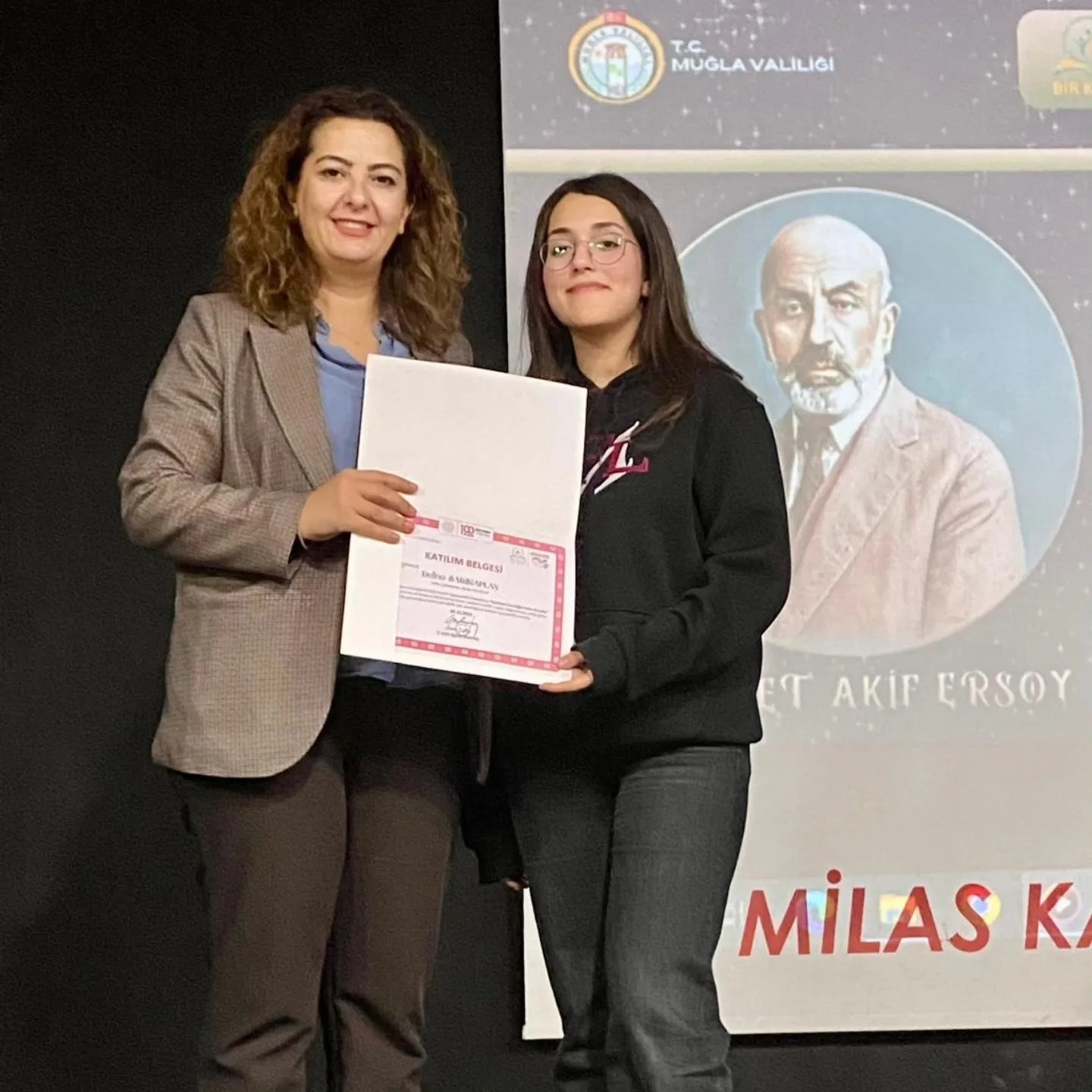Gürel Lök Mesleki ve Teknik Anadolu Lisesi “Bir İdealin Peşinde: Mehmet Akif Ersoy, Selimiye Timuçin Biliktan ÇPAL “Safahat’ta İnsan, Ahlak ve Toplum”, Milas Anadolu Lisesi “Mehmet Âkif ve Gençlik: Asım’ın Nesline Mektup”, Cumhuriyet Anadolu Lisesi “Âkif’in İzinde: İnanç, Sanat ve Vefa” konularında bilgi paylaşımı yaptıkları panelde Sebahattin Akyüz Fen Lisesi adına “İstiklâl Marşı ve Millî Ruh” konusunu Defne Sarıkaplan sunum yaptı.