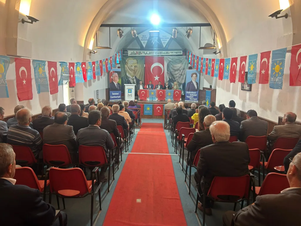 Yeni ilçe başkanı Kasım Özkan ise, “8 yıl önce partimiz kurulduğunda kavga etmek için değil millete hizmet etmek için yola çıktık. O günlerde atılan adımlar bugün Türkiye’nin her köşesinde bir umut ışığına dönüştü. O günkü emeklerin alın terinin semeresini bugün hep birlikte görüyoruz. Geçmişte söylediğimiz sözler bugün bizleri haklı çıkarmıştır. Bugün burada yaptığımız iş sadece bir kongre değil, bir inanç gösterisidir. Türk milletinin ayrıştırdığı, kardeşliğin zedelendiği bir dönemden birliğin, beraberliğin, kardeşlerin temsilcisiyiz. Bizim davamız çıkar için değil, milletin huzuru, adaleti ve geleceği içindir. Bu dava bir ibadet kadar önemlidir Arkadaşlar korkakların ne yurdu olur ne de vatanı, ne davası olur. Tarih korkakların hikayesini yazmaz. Çünkü onların yazılacak bir hikayesi yoktur. Biz cesurların partisiyiz. Biz milletin önünde, haklının yanında, doğruluğun izinde yürüyen bir hareketiz. Değerli İyi Partiler, geçtiğimiz hafta Türkiye Büyük Millet Meclisi’nde bebek katiline özgürlük diye bağıranlar, Haziran ayında da Ermeni soykırım yalanlarını kendine rehber edilenler değil, biz İyi Partiler susturulmaya çalıştık. Neyse ki biz İyi Partililer olarak milletimizin içini sızlatan bu eylemlerde milletimizin sesi olduk. Sorumlu bir Türk evladı olarak her iki konuyla alakalı olarak suç durusunda bulunduk. Biz biliyoruz ki bu siyasi konjonktürde yargı üç maymun oynayacaktır. Lakin biz yine biliyoruz ki devlet hep 18 yaşındadır. Günü geldiğinde kaydının tuttuğu her şeyin hesabını sormaya muktedirdir. Vatanını seven milletini koruyan, teröre karşı dimdik duran İyi Partililer olarak tek başımıza da kalsak teröriste terörist, ihanete ihanet demekten asla geri durmayacağız. Bu milletin evlatlarını suçlayanlara sesleniyorum. Bizim milliyetçiliğimizi, vatanseverliğimizi sizin kirli dilleriniz değil bu milletin temiz vicdanı ölçer.” diye konuştu.