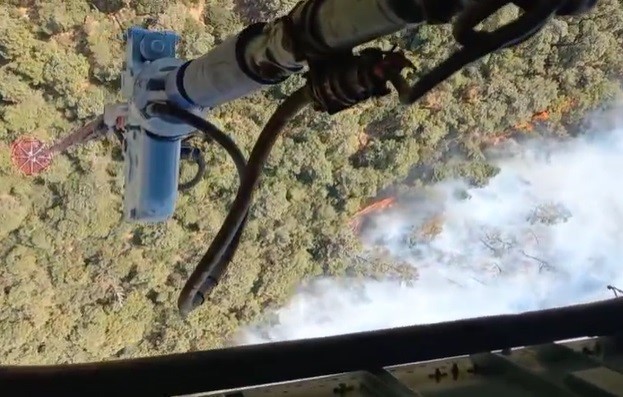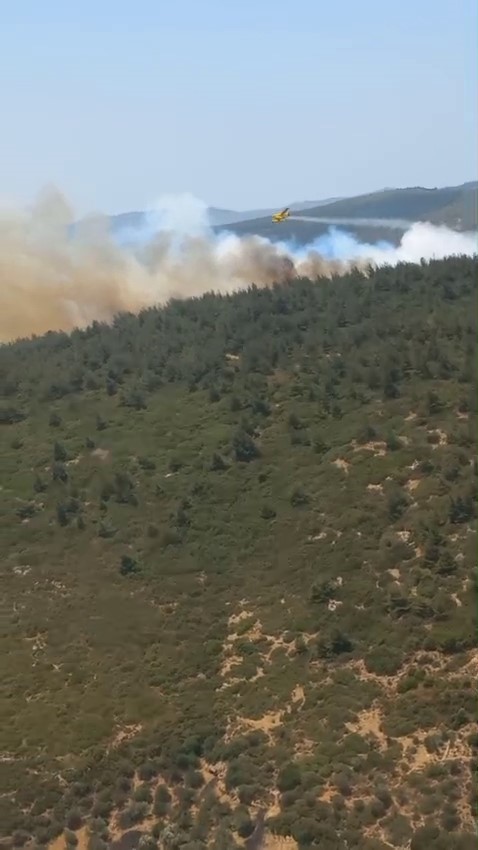 İzmir’in Foça ilçesinde çıkan orman yangınına ekipler havadan ve karadan yoğun şekilde müdahale ediyor.