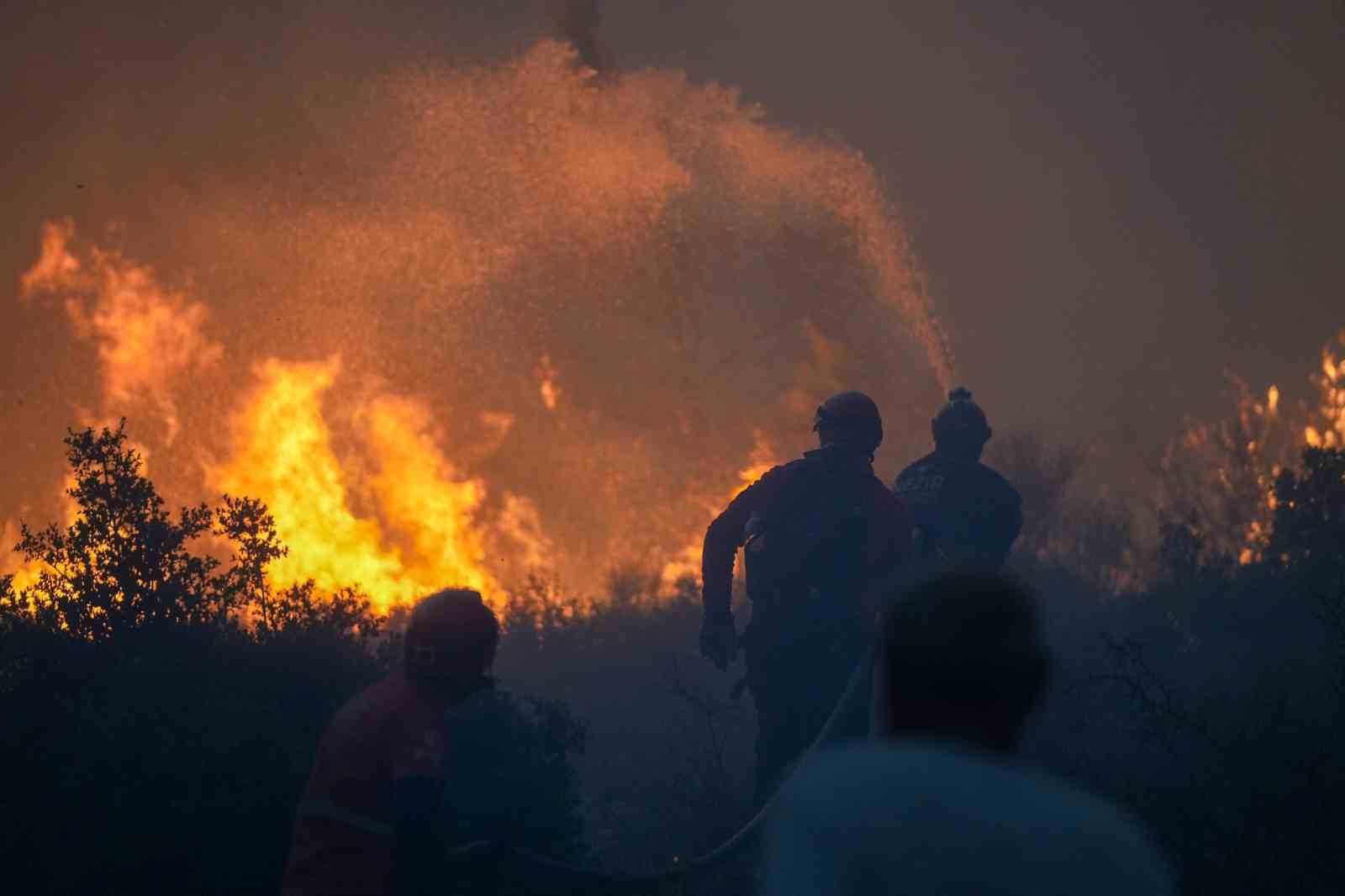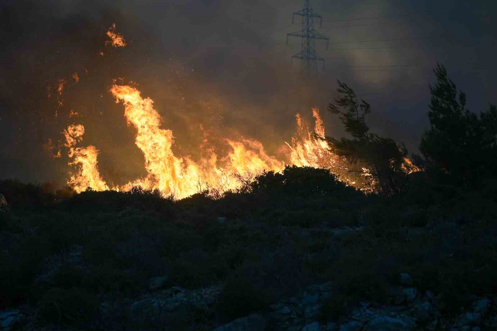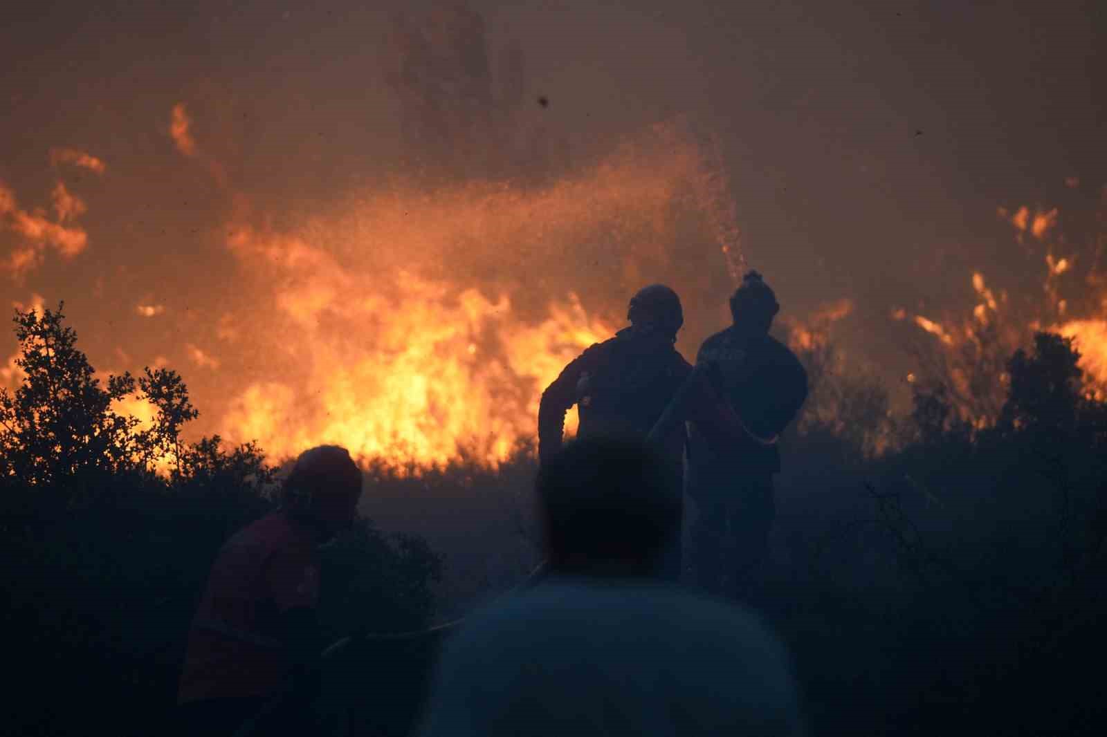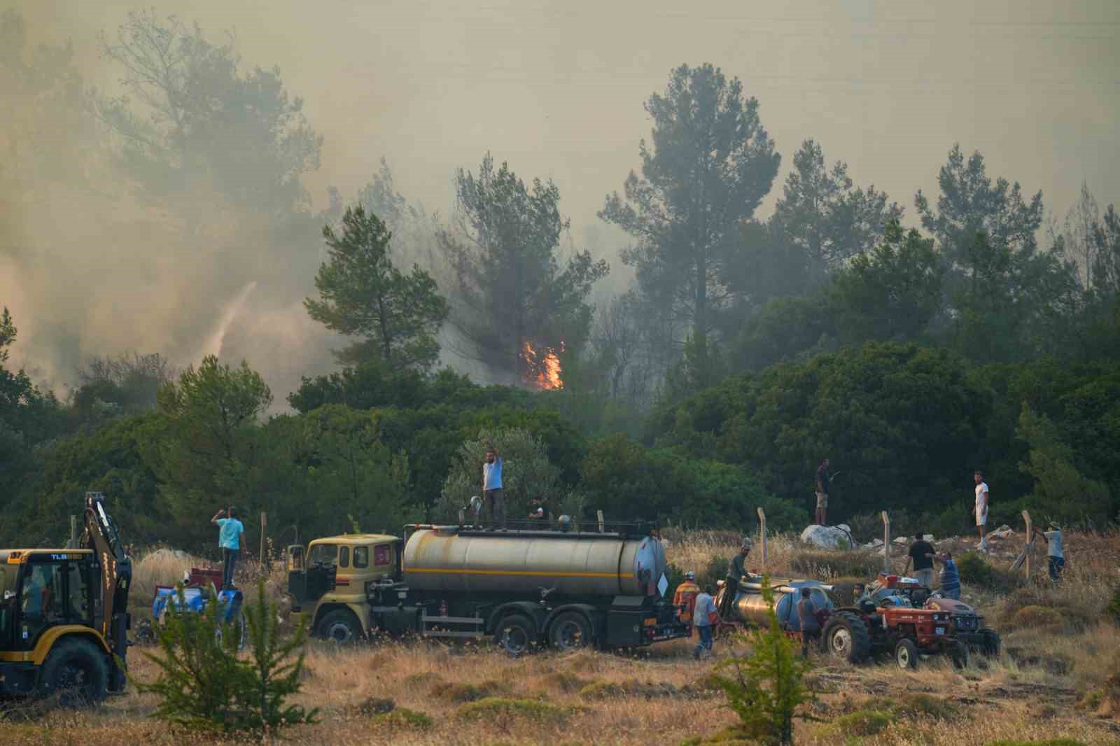 İzmir’in Çeşme ilçesinde, zirai bölgede başlayıp ormanlık alana yayılan yangını söndürme çalışmaları aralıksız devam ediyor.