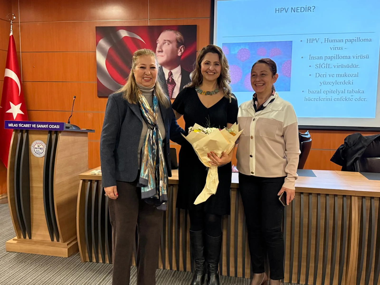 Programın konuğu Op. Dr. Seçil Günay Avcı, konuşmasına Milaslı kimliğini vurgulayarak başladı. Avcı, “Hoş bulduk demiyorum, aslında ev sahibiyim. Milas’ta doğdum, büyüdüm; sizin hemşerinizim” sözleriyle salondaki katılımcılardan büyük alkış aldı.