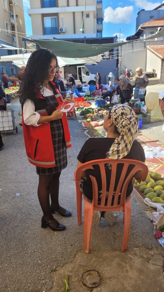 Pazar yerinde kurulan stantta vatandaşlara kadına yönelik şiddetin önlenmesi, 6284 Sayılı Kanun’un sağladığı haklar ve KADES uygulaması hakkında bilgilendirme yapıldı. Kadın ve erkek vatandaşlara bilgilendirici broşürler dağıtılarak, şiddete karşı toplumsal farkındalığın artırılması amaçlandı.