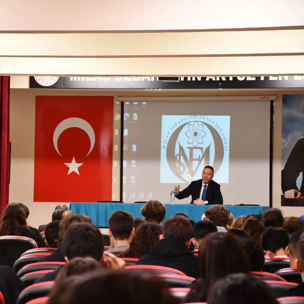 Milas İlçe Kaymakamı Mustafa Ünver Böke, Sebahattin Akyüz Fen Lisesi’ni ziyaret ederek öğrencilerle bir araya geldi. Samimi bir atmosferde gerçekleşen buluşmada kariyer planlaması ve kamu hizmeti üzerine önemli mesajlar verildi. Öğrencilerin yoğun ilgi gösterdiği söyleşi, yaklaşık bir buçuk saat sürdü.