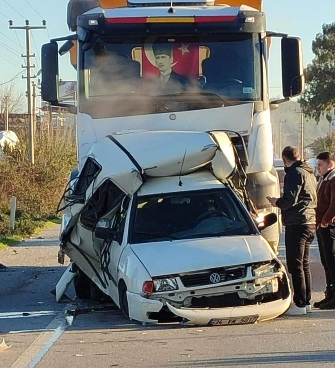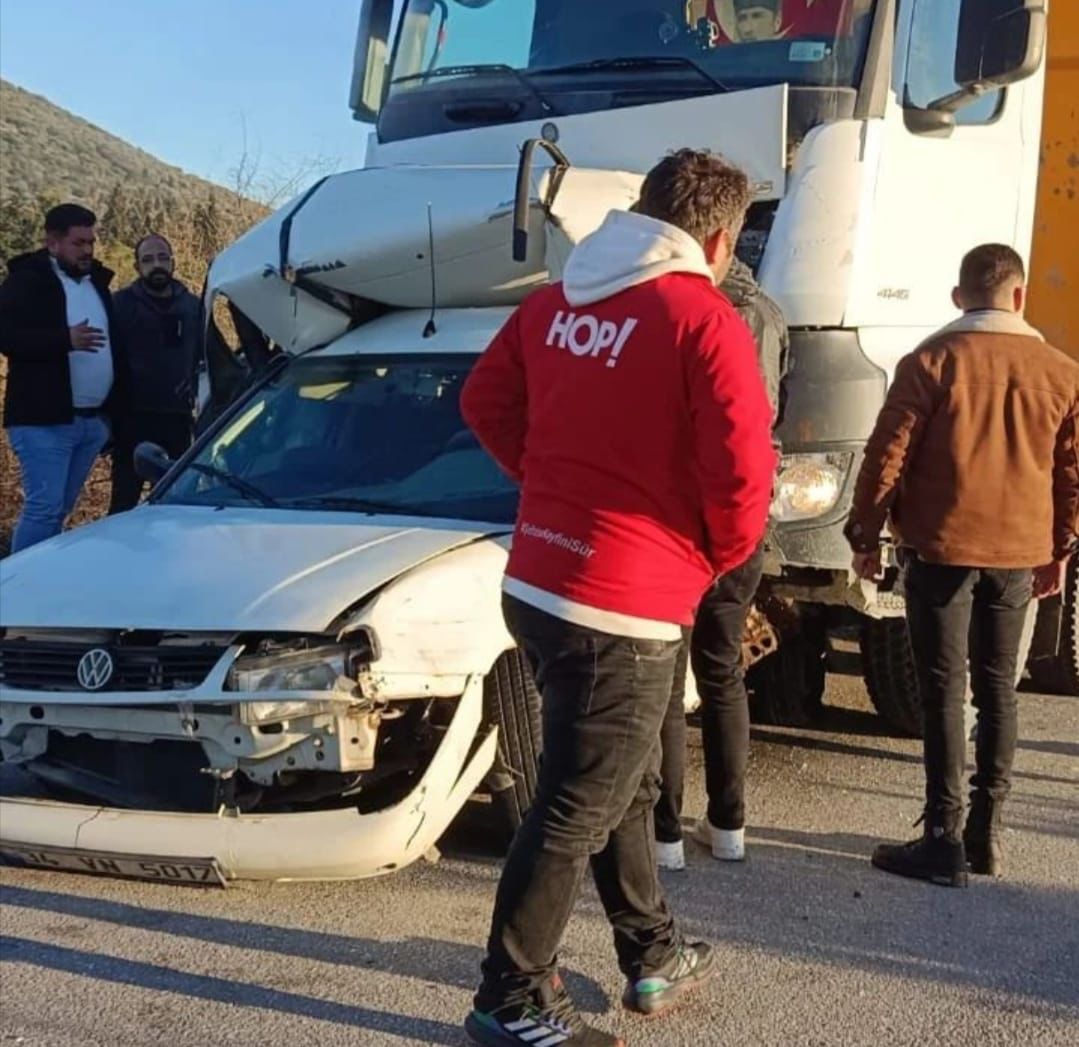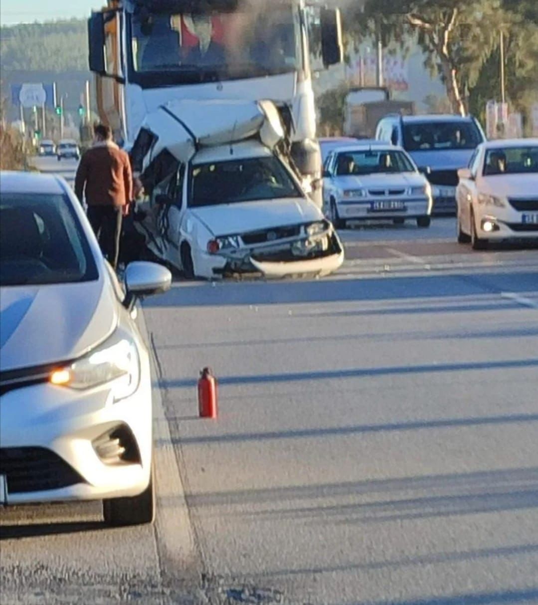 Milas’a bağlı Kemikler mahallesinde bulunan kavşakta kamyon bir araca arkadan çarptı hızlı olduğu belirtilen kamyonun çarptığı aracın arka kısmı ise nerede ise şoför mahallİne kadar geldi.