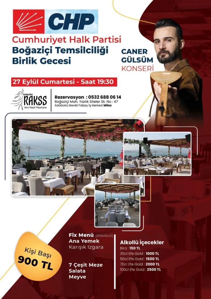 CHP İlçe Başkanlığı bütçesine katkı amaçlı bir gece düzenlendi kişi başı 900 TL.