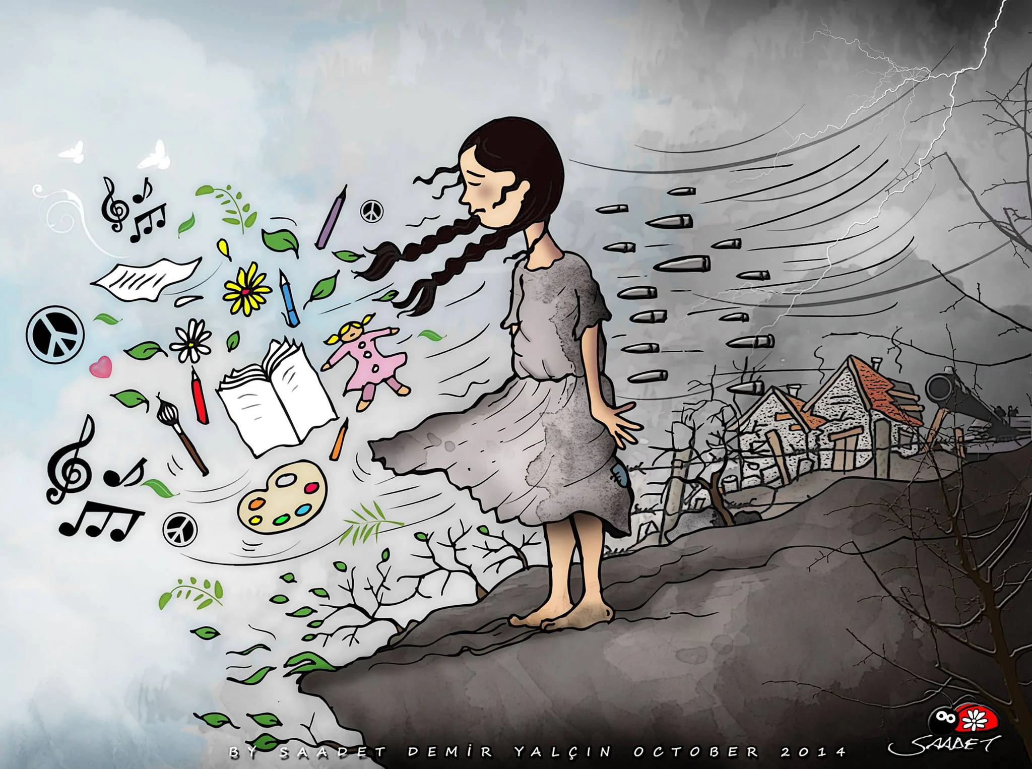 Özellikle 2008 yılından itibaren uluslararası alanda faaliyet göstermeye başladığmdan bugüne ele aldığım evrensel konular, savaşlardaki başta çocuklar ve kadınlar olmak üzere mağdur insanlar, onların dramlarınaı, acılarına çizgi diliyle ses olmak beni yansıtan detaylar oldu. Kadınlara, çocuklara, hayvanlara, doğaya yönelik çizgilerimin beni daha iyi yansıttığını düşünüyorum.
