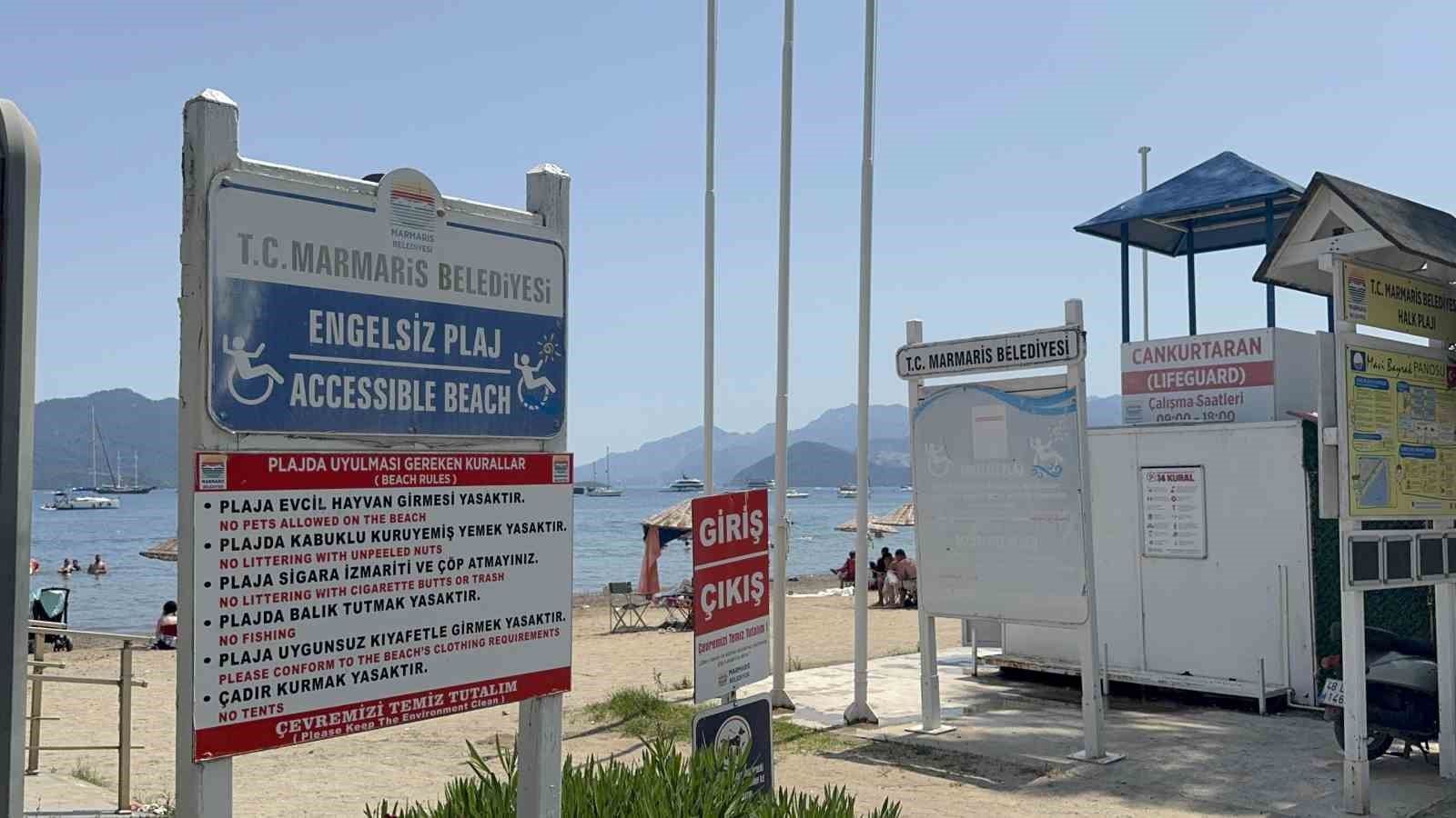 Muğla’nın gözde turizm merkezi Marmaris’te, ilçe merkezinde bulunan ve mavi bayrak ile “engelsiz plaj” unvanına sahip halk plajında vatandaşlar, cankurtaran, soyunma kabini ve engelli bireylerin erişimini kolaylaştıracak düzenleme olmamasına tepki gösterdi. Vatandaşlar kıyıda bir cankurtaran kulübesinin yer aldığını ancak boş olduğunu, engelli platformunun henüz kurulmadığını, tuvaletlerin ise soyunma kabini olarak kullanıldığını söyledi.
