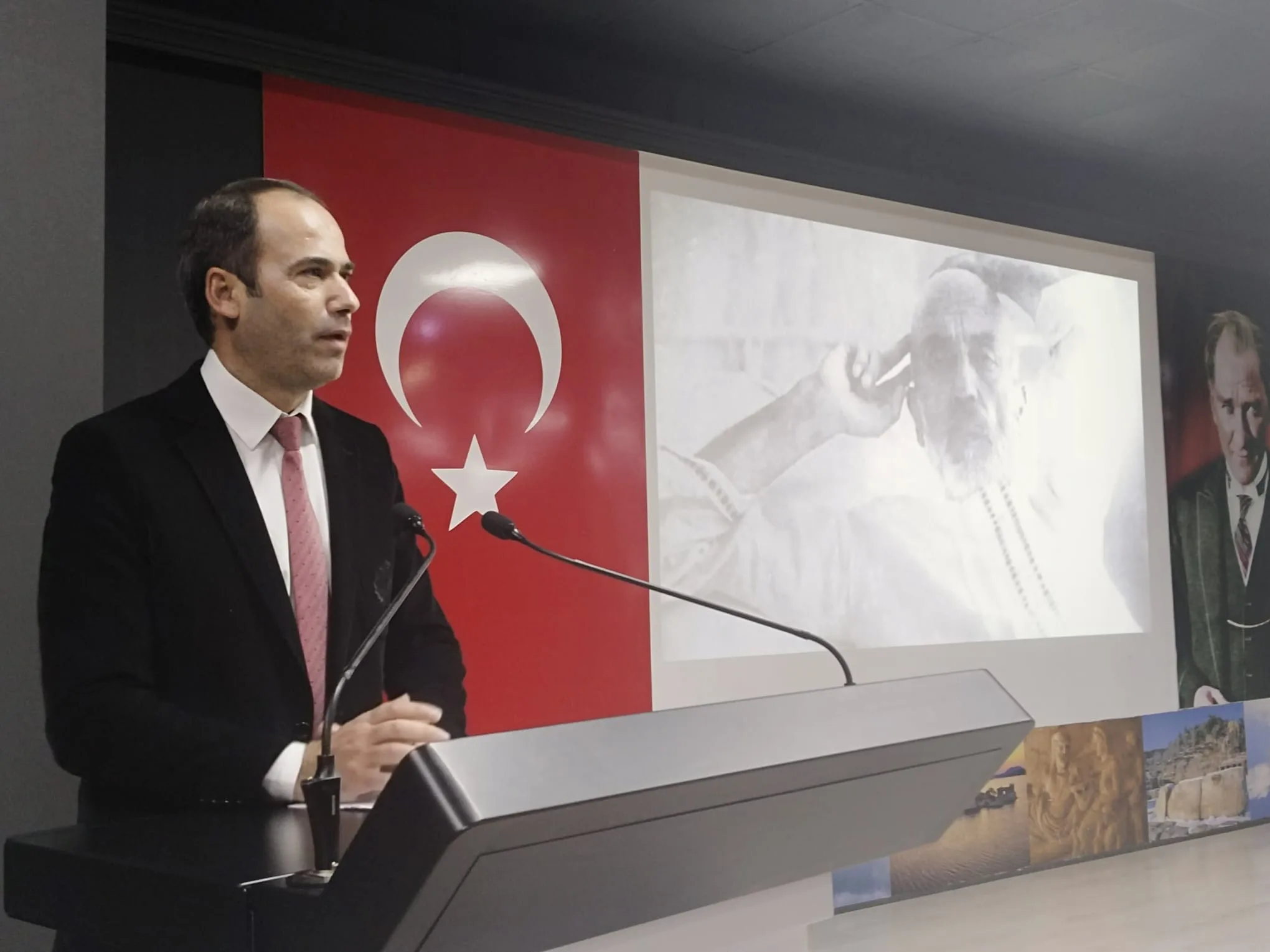 Prof. Dr. Yağcı’nın ardından kürsüye gelen Dr. Öğretim Üyesi Murat Metli ise Mehmet Akif Ersoy’un doğumundan vefatına kadar olan yaşamını, eserlerini ve özellikle İstiklal Marşı ile Çanakkale Destanı’nı hangi ruh haliyle yazdığını detaylarıyla anlattı.