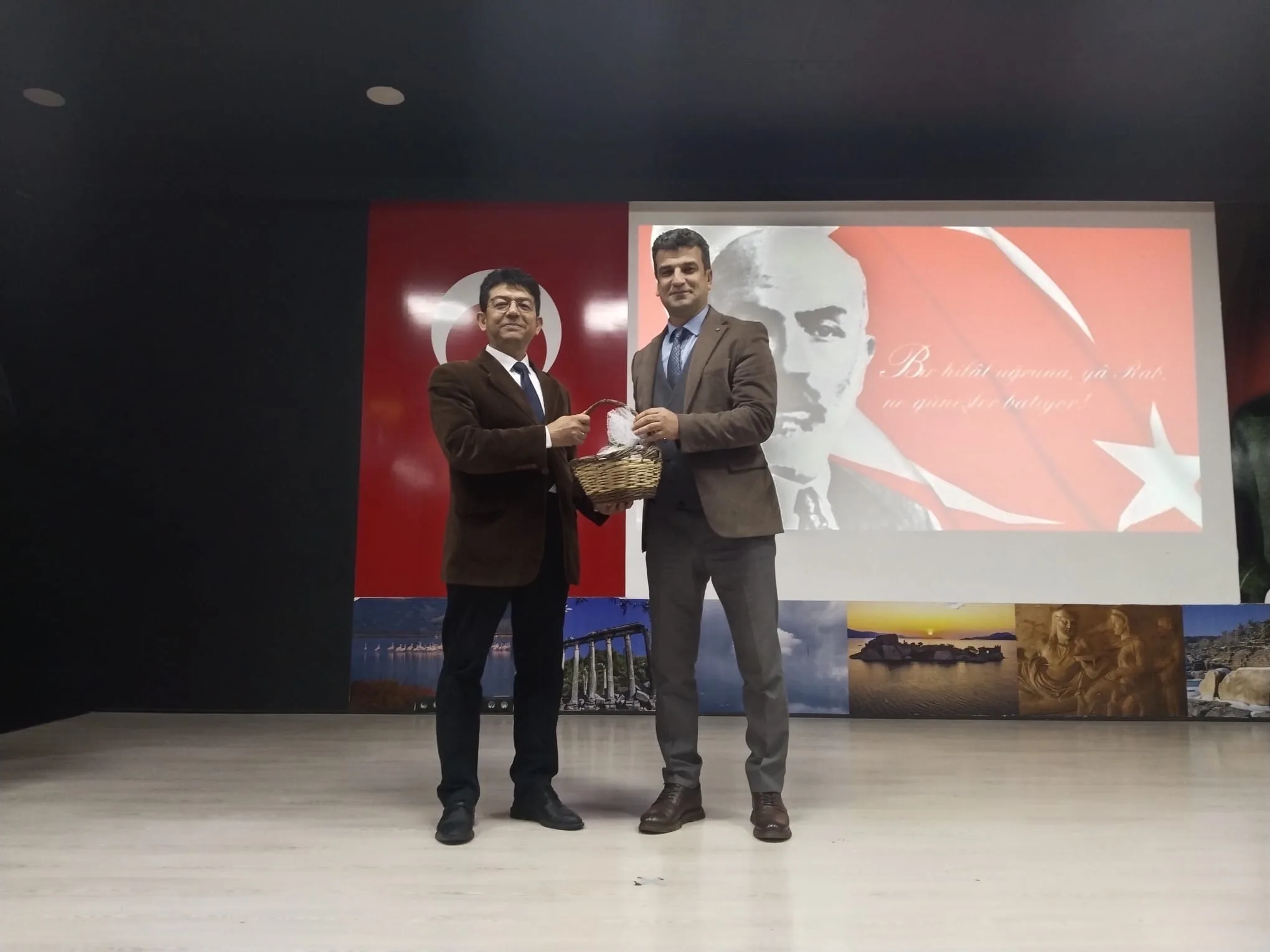 Programın sonunda Milas İlçe Milli Eğitim Müdürü İsa Bal, Prof. Dr. Artay Yağcı ve Dr. Öğretim Üyesi Murat Metli’ye teşekkür ederek, günün anısına birer hediye takdim etti.