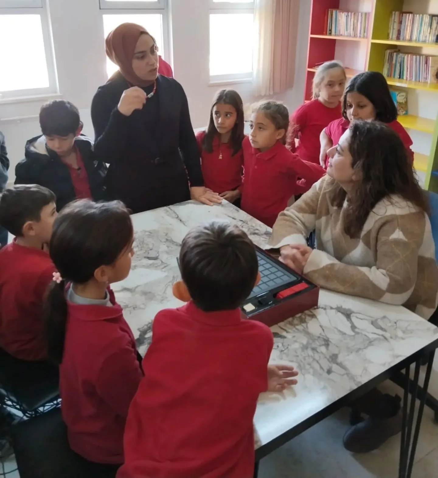 Kıyıkışlacık İlk/Ortaokulu’nu ziyaret eden İlçe Millî Eğitim Şube Müdürleri Ayhan Taşdemir ve Ümran İnce, öğrencilerle bir araya geldiler. Ziyaret sırasında öğrencilerin derslerdeki motivasyonlarını ve sosyal etkinliklere katılımlarını memnuniyetle gözlemleyen şube müdürleri, sınıfları gezerek öğrencilerle sohbet ettiler.