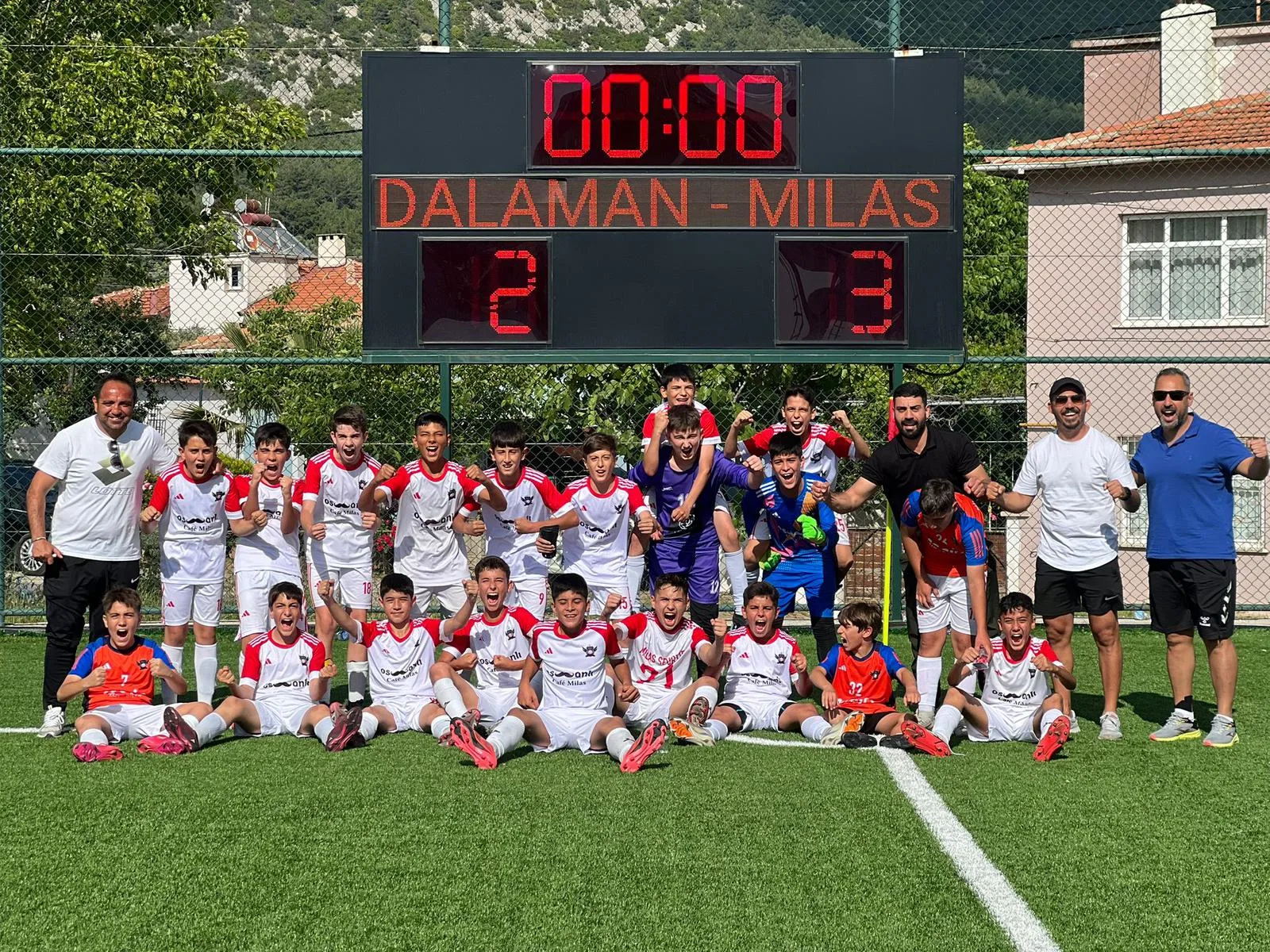 Milas’ta altyapı futbolunun gururu haline gelen Milas Sportif U13 Takımı, başarıdan başarıya koşuyor. Antrenörlüğünü Mustafa İçöz’ün yaptığı takım, Muğla genelinde düzenlenen U13 Ligi’nde oynadığı 12 maçın 11’ini kazanarak grup aşamasını lider tamamladı ve şampiyonluğunu ilan etti. Bu başarının ardından Muğla’da son sekiz takım arasına kalan Milas temsilcisi, çeyrek finalde güçlü rakibi Dalaman Atletik ile eşleşti.