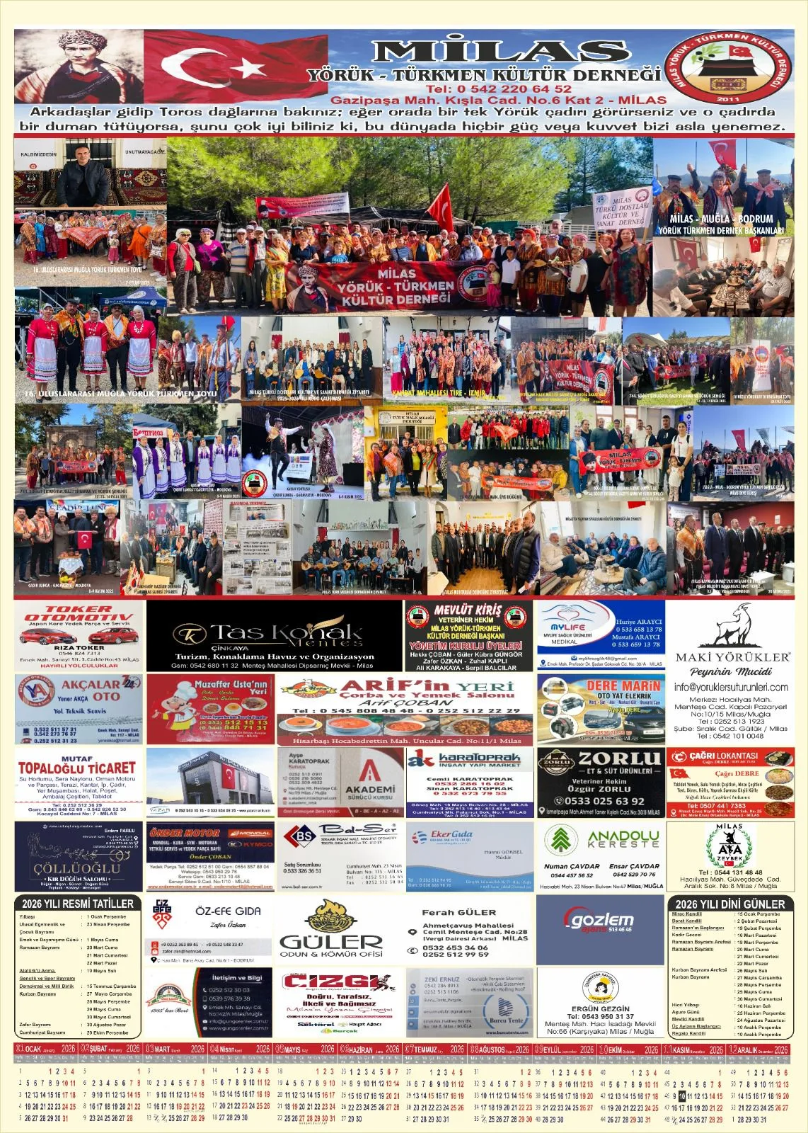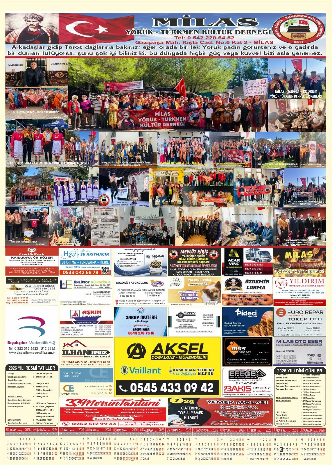 Milas Yörük Türkmen Kültür Derneği Başkanı Mevlüt Kiriş, derneğin geleneksel hale getirdiği Yeni Yıl Takvimi çalışmasının bu yıl da gönüllü destekçiler ve dernek üyelerinin katkılarıyla büyük bir ilgiyle hazırlandığını açıkladı.