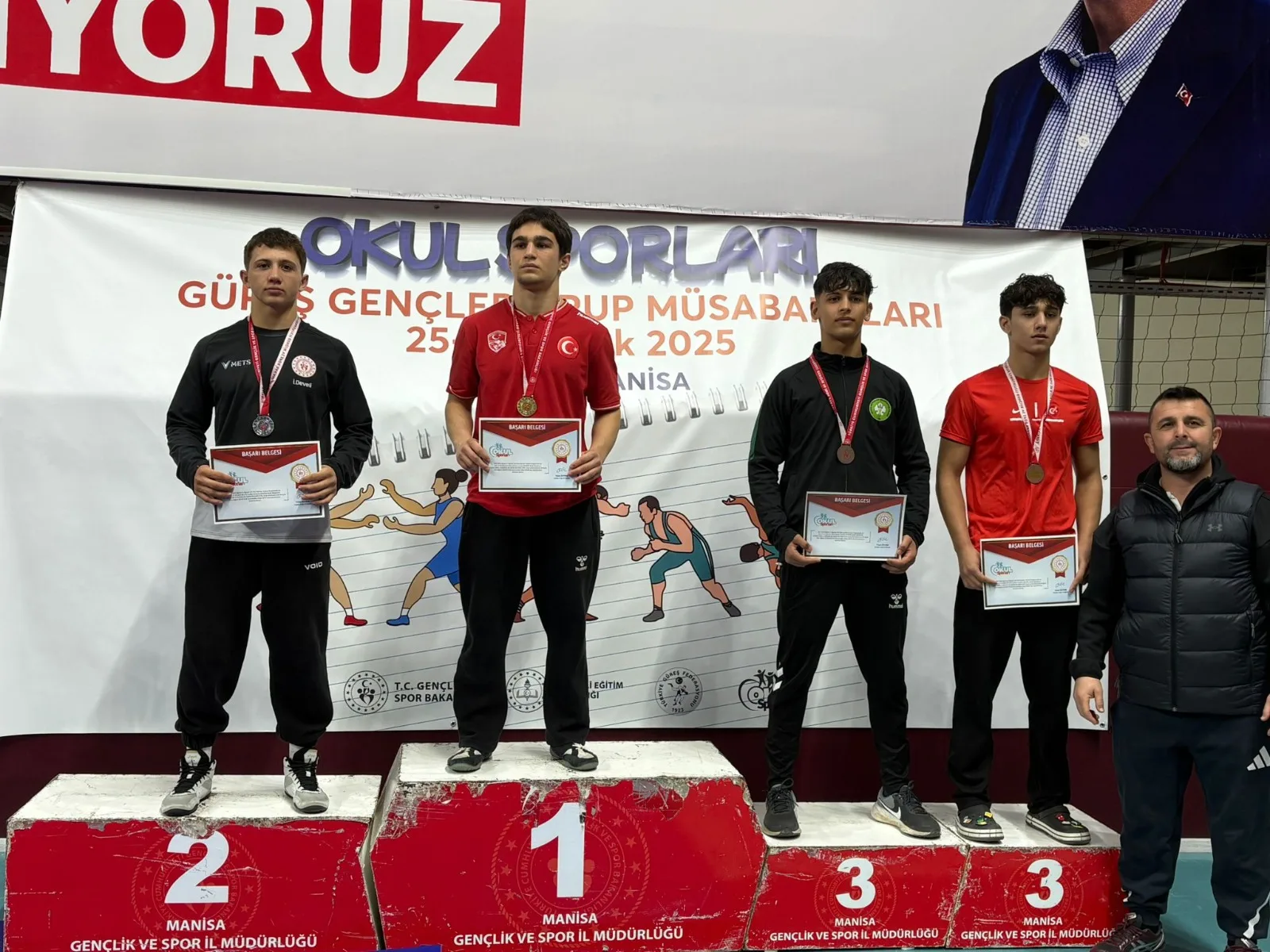 Milas Şehit Murat İnci Anadolu İmam Hatip Lisesi öğrencileri, okul sporları kapsamında Manisa’nın Akhisar ilçesinde düzenlenen Grekoromen Güreş Grup Müsabakalarında önemli bir başarıya imza attı. 27-28 Aralık 2025 tarihlerinde gerçekleştirilen müsabakalarda Milaslı sporcular, farklı kilolarda elde ettikleri derecelerle ilçeye madalya sevinci yaşattı.