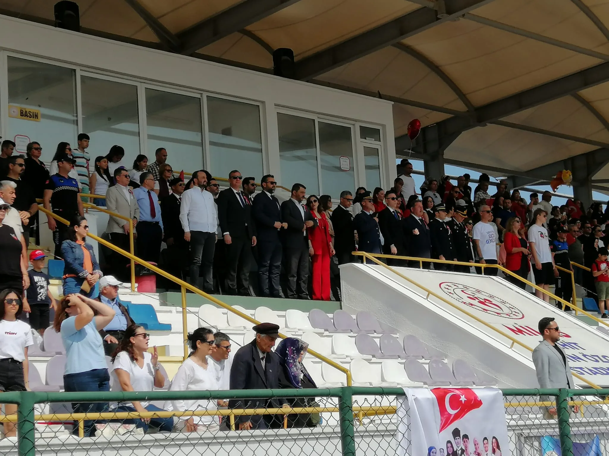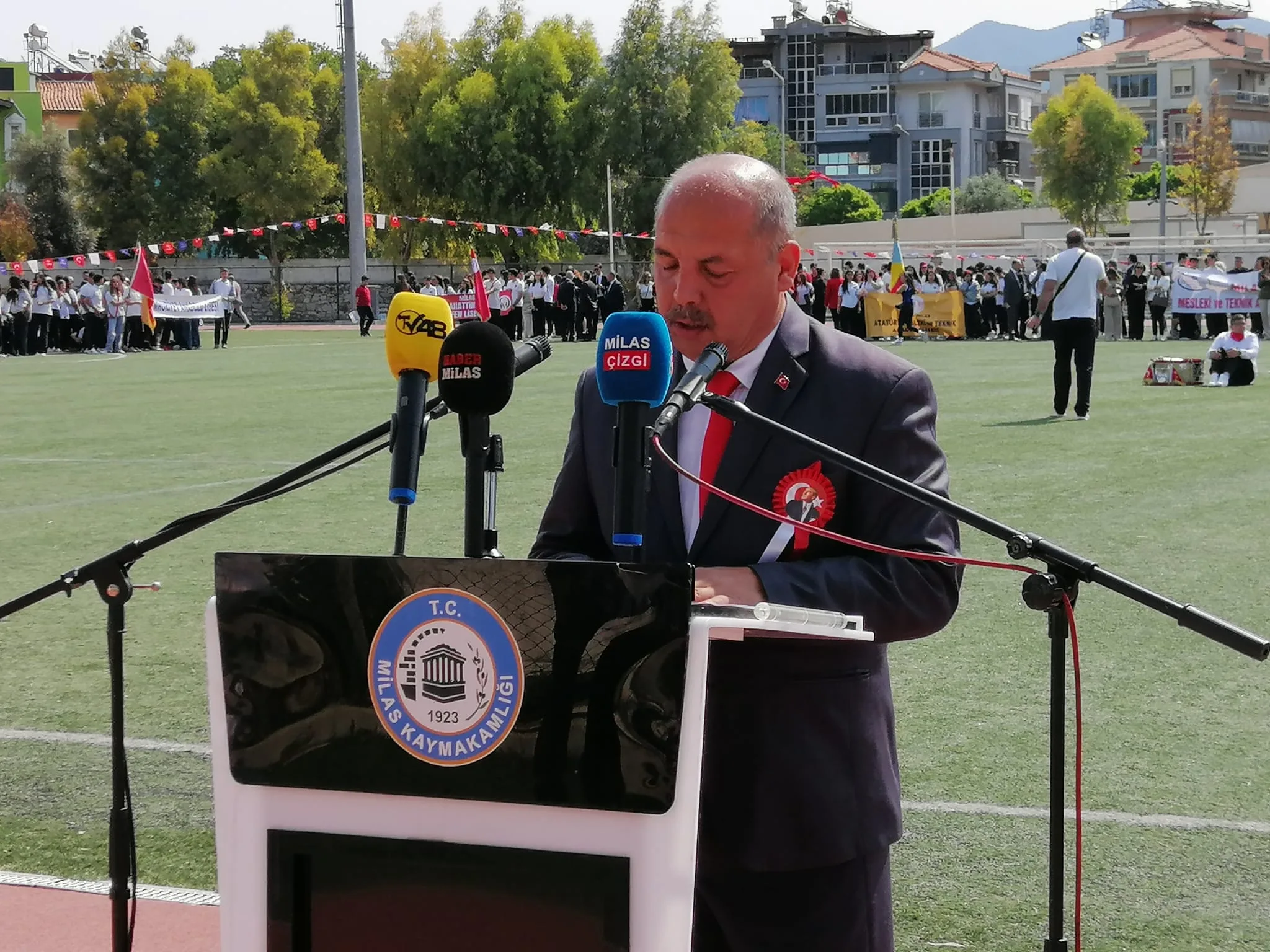 Milas Stadyumu’nda gerçekleştirilen kutlama programına Milas Kaymakamı Mustafa Ünver Böke, Garnizon Komutanı Albay Osman Macar, Milas Belediye Başkanı Fevzi Topuz, Cumhuriyet Başsavcısı Salih Kılıç, protokol üyeleri, öğrenciler ve vatandaşlar katıldı.