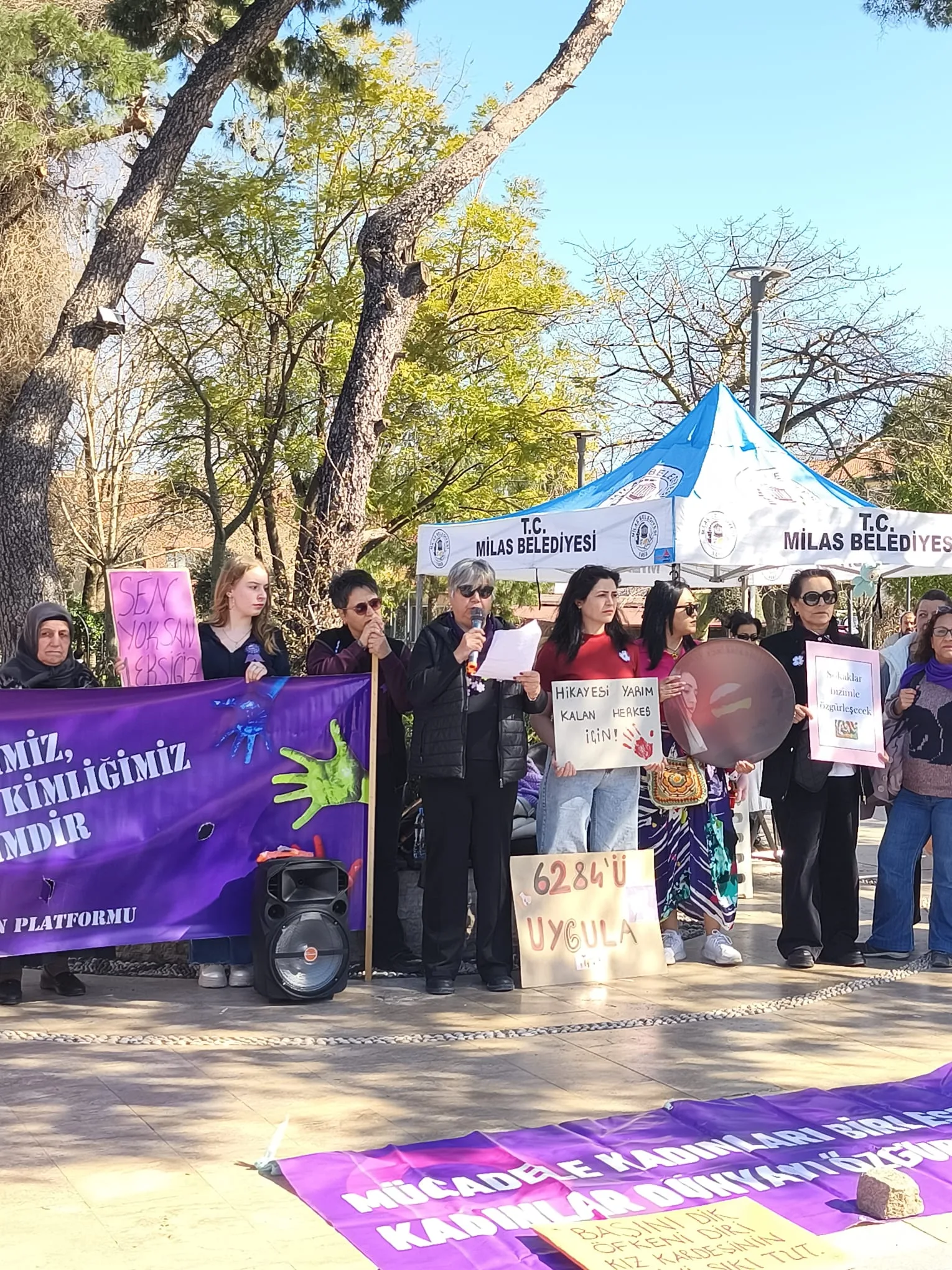 Milas Kadın Platformu açıklamasında kadın cinayetlerinin yalnızca bireysel değil, aynı zamanda politik ve toplumsal bir sorun olduğuna dikkat çekildi. Metinde, cezasızlık ve hukuksuzluğun failleri cesaretlendirdiği belirtilerek kadınların yaşam hakkını koruyacak etkin politikaların hayata geçirilmesi gerektiği ifade edildi.