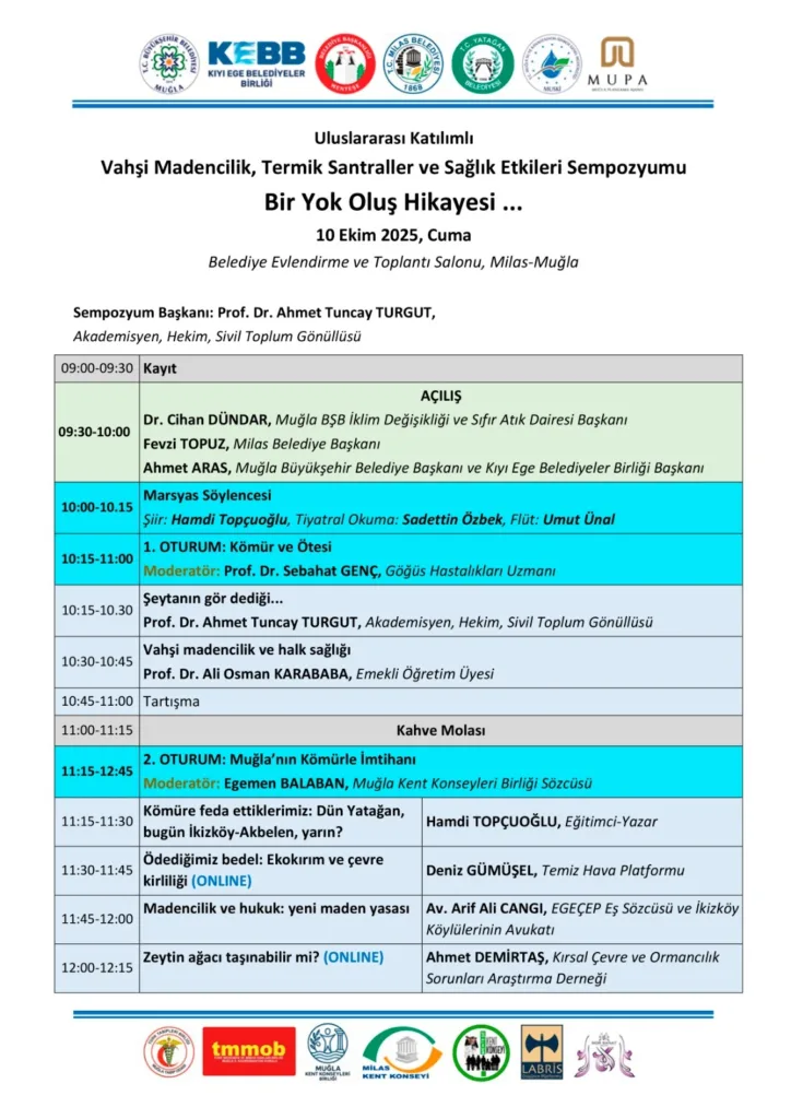 Milas’ta belediyeler ve sivil toplum kuruluşlarının iş birliğiyle, “Vahşi Madencilik, Termik Santraller ve Sağlık Etkileri Sempozyumu – Bir Yok Oluş Hikayesi” 10 Ekim Cuma günü Milas Belediyesi Evlendirme ve Toplantı Salonu’nda gerçekleştirilecek. Sabah 09.00’da başlayacak olan sempozyum, gün boyu sürecek oturumlarla çevre ve sağlık ilişkisine dikkat çekecek.