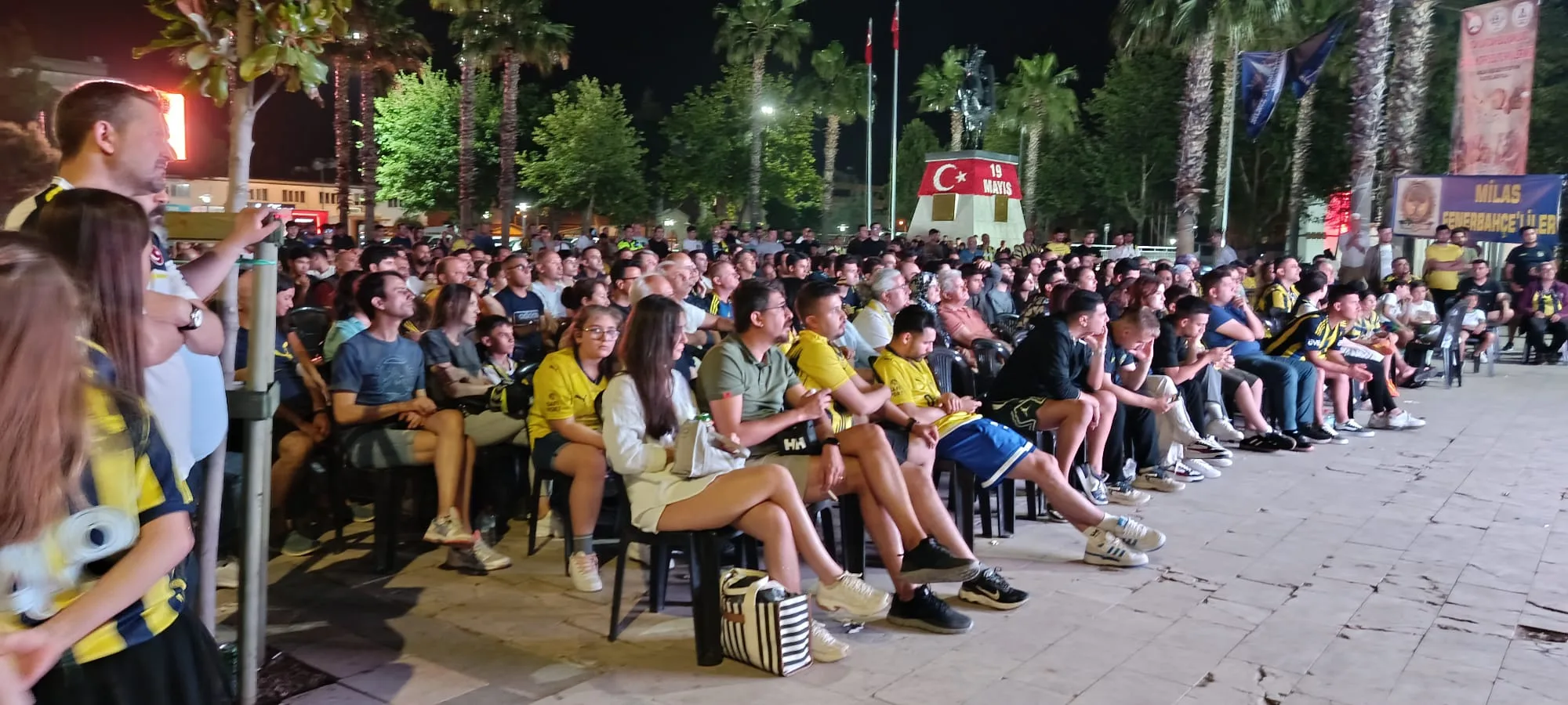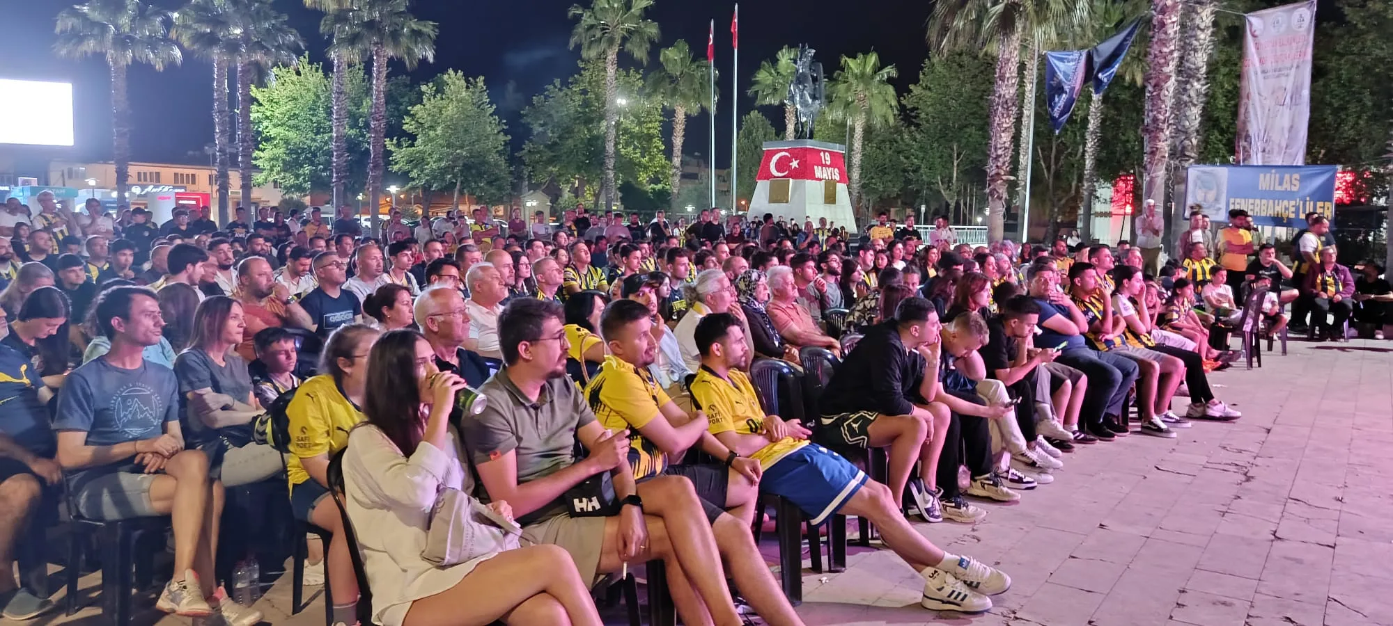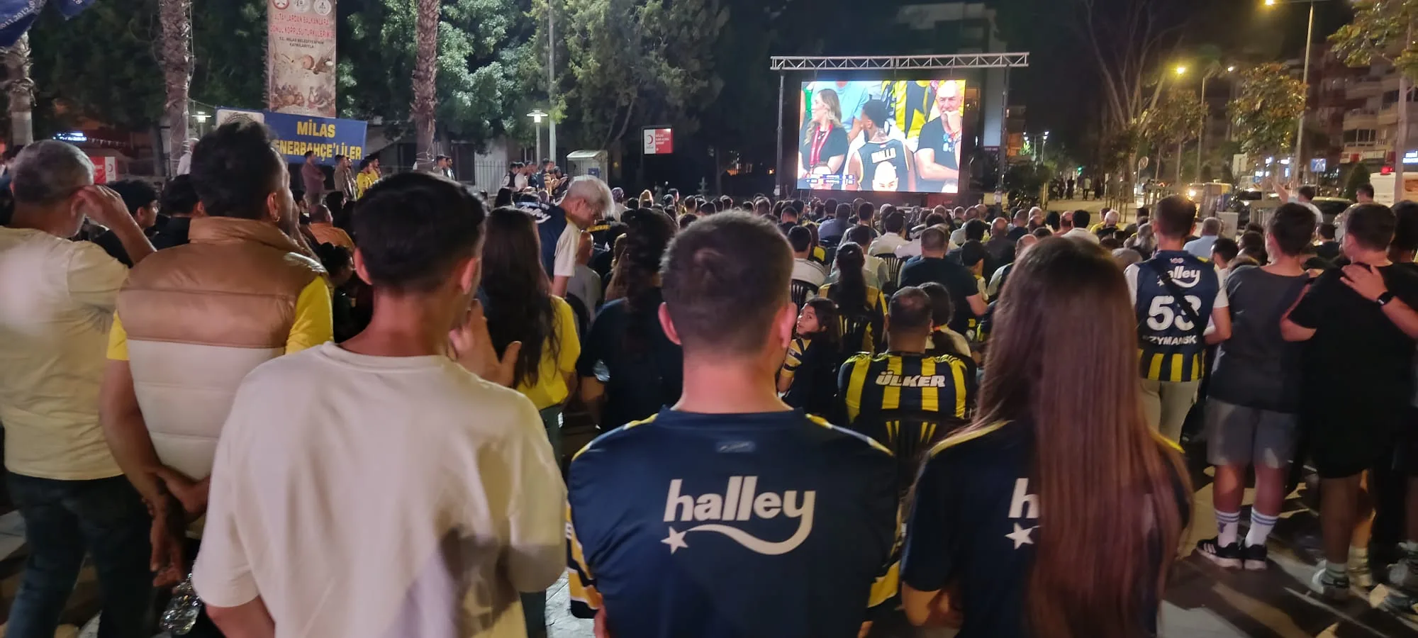 THY Euroleague Final Four finalinde Fenerbahçe Beko ile Fransız temsilcisi Monaco arasında oynanan tarihi karşılaşma, Türkiye’nin dört bir yanında olduğu gibi Milas’ta da büyük bir coşkuyla takip edildi. Milas Fenerbahçeliler Derneği tarafından Atatürk Anıtı önüne kurulan dev ekranla sarı-lacivertli taraftarlar maç heyecanını birlikte yaşadı.