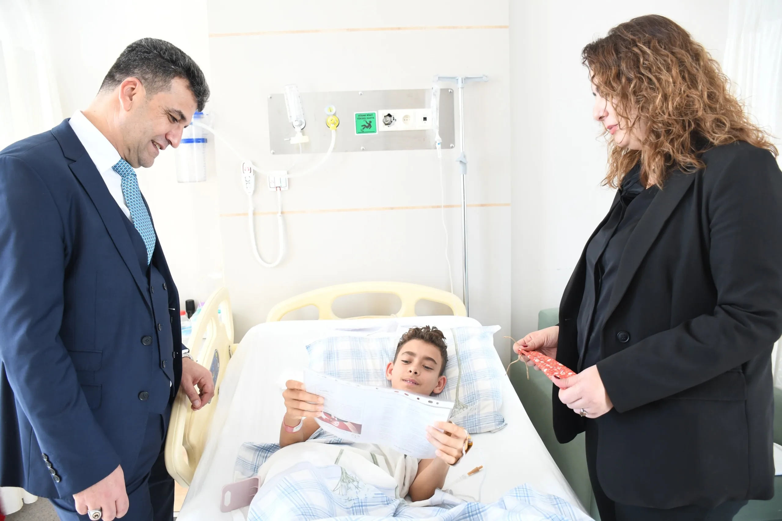 2025-2026 eğitim öğretim yılının birinci dönemi sonunda sağlık sorunları nedeniyle karnelerini alamayan öğrenciler, tedavi gördükleri hastanede İlçe Milli Eğitim Müdürü İsa Bal ve Şube Müdürü Ümran İnce tarafından ziyaret edilerek hem geçmiş olsun denildi hem de öğrencilere karnelere hasta yatağında teslim edildi.