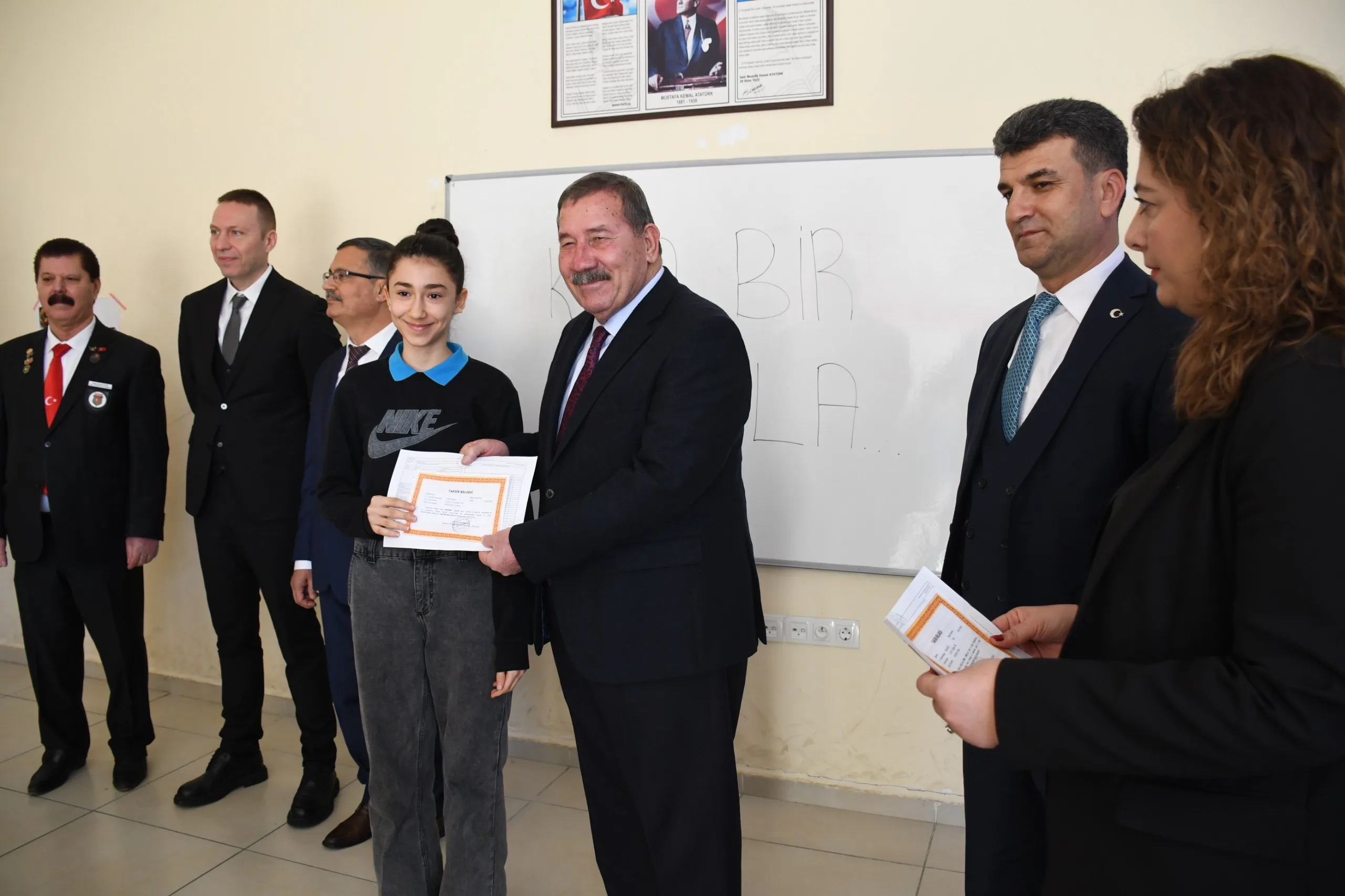 Törenin dikkat çeken anlarından biri de okçuluk branşında elde ettiği derecelerle Milas’ı başarıyla temsil eden Dr. Mete Anadolu Lisesi öğrencisi Ceylin Kaynak’ın karnesini İlçe Milli Eğitim Müdürü İsa Bal’ın elinden alması oldu. Genç sporcunun bu başarısı, büyük alkış aldı.