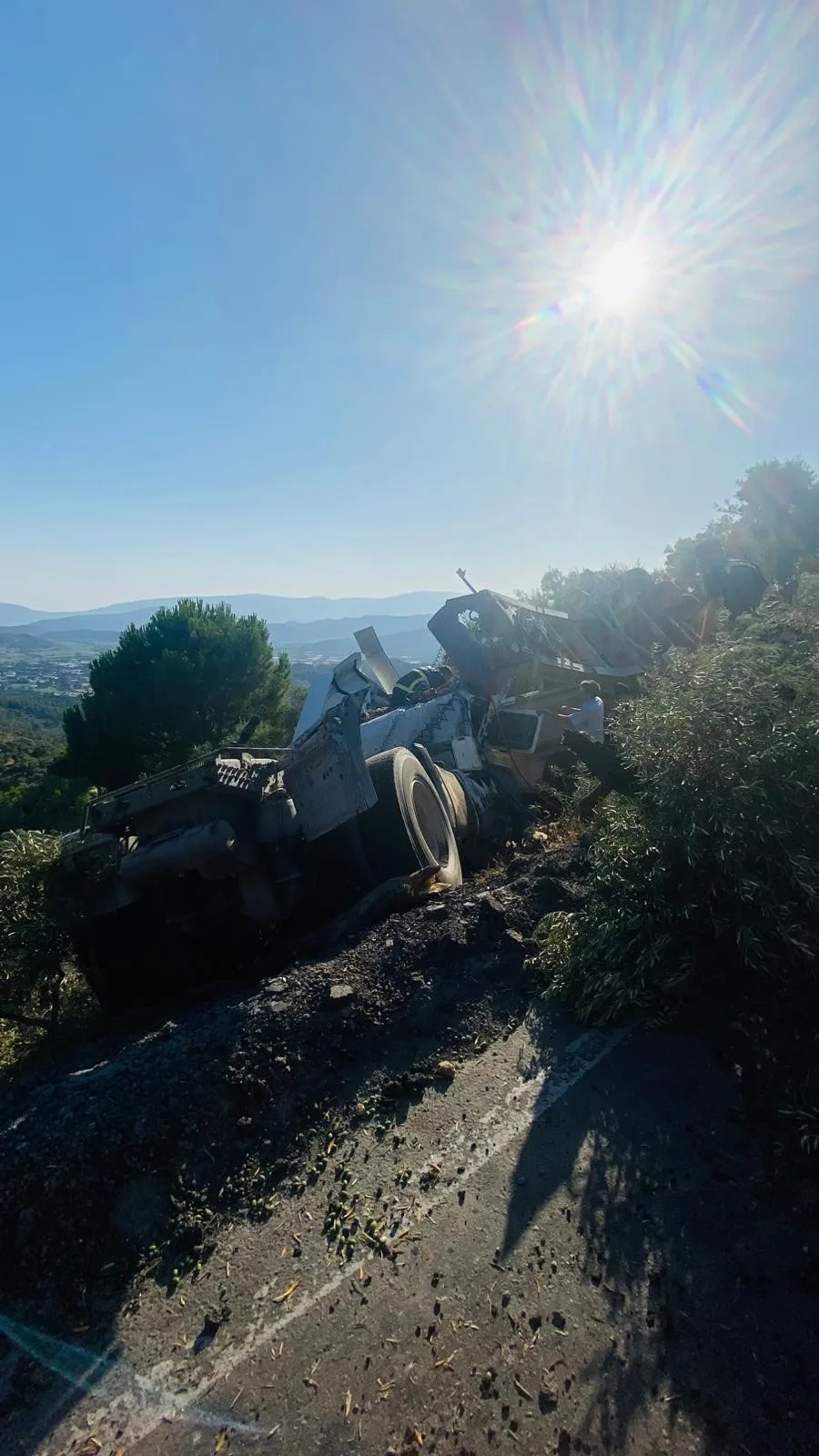 Kaza, Milas’ın Labranda yolu üzerindeki Kargıcak Mahallesi mevkiinde meydana geldi. 09 AGK 355 plakalı tırın,freni patlaması sonucu kontrolden çıkarak şarampole devrildiği çğrenildi.