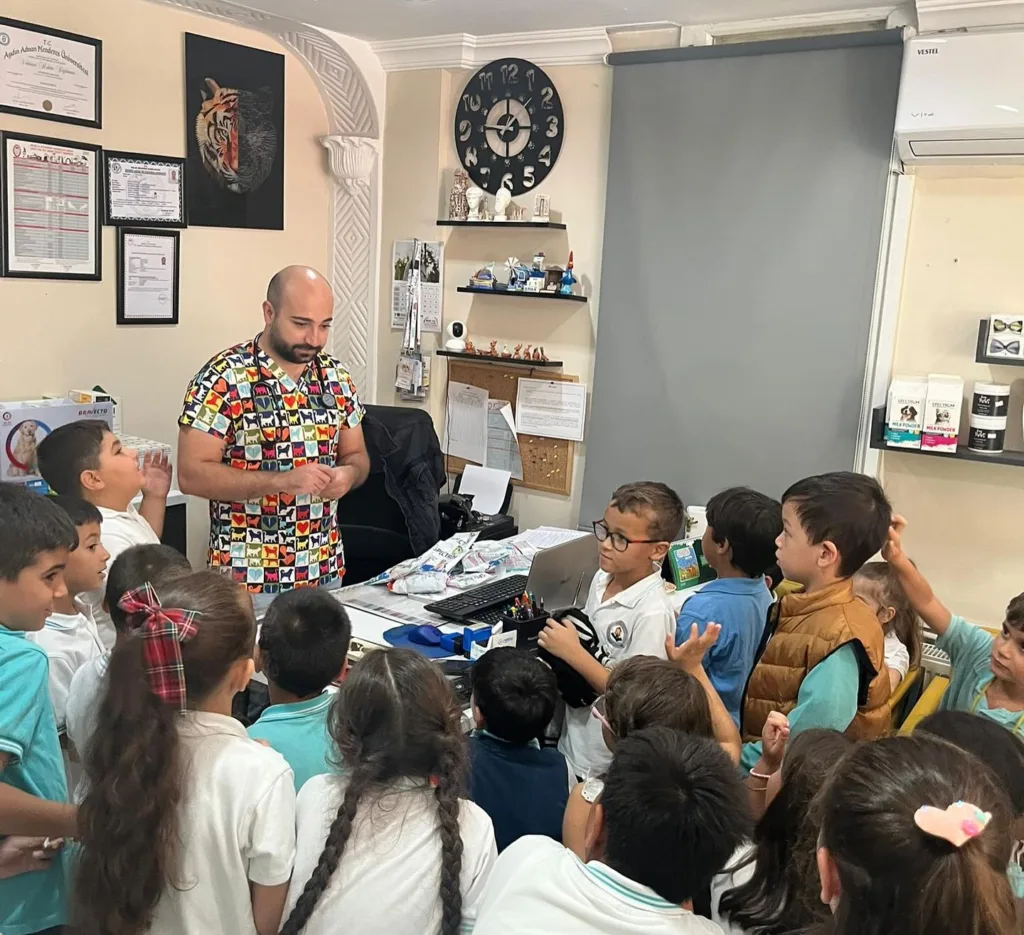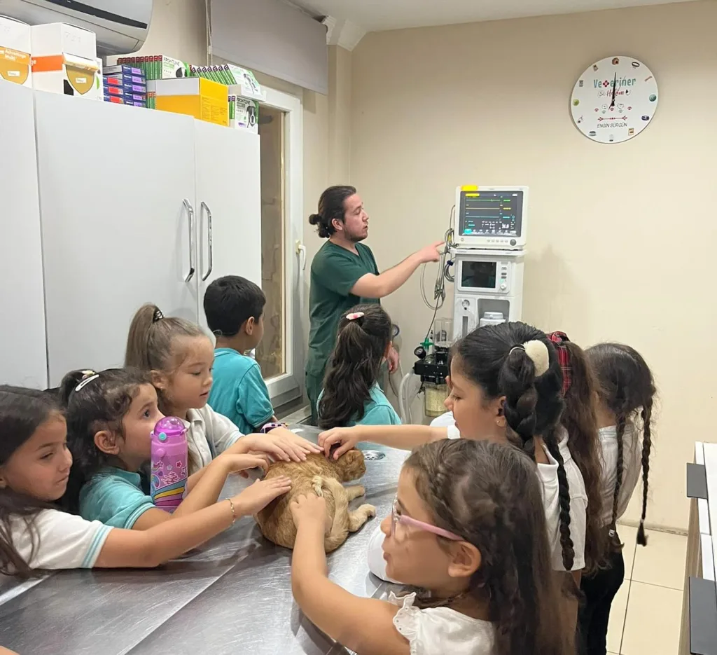 Milas’ta faaliyet gösteren Hermias Pet Veteriner Kliniği, 4 Ekim Hayvanları Koruma Günü kapsamında minik öğrencileri ağırladı. Etkinlikte çocuklar, veteriner hekimlerin rehberliğinde hayvan sağlığı hakkında bilgi aldı.