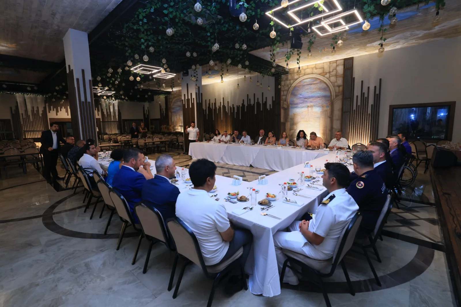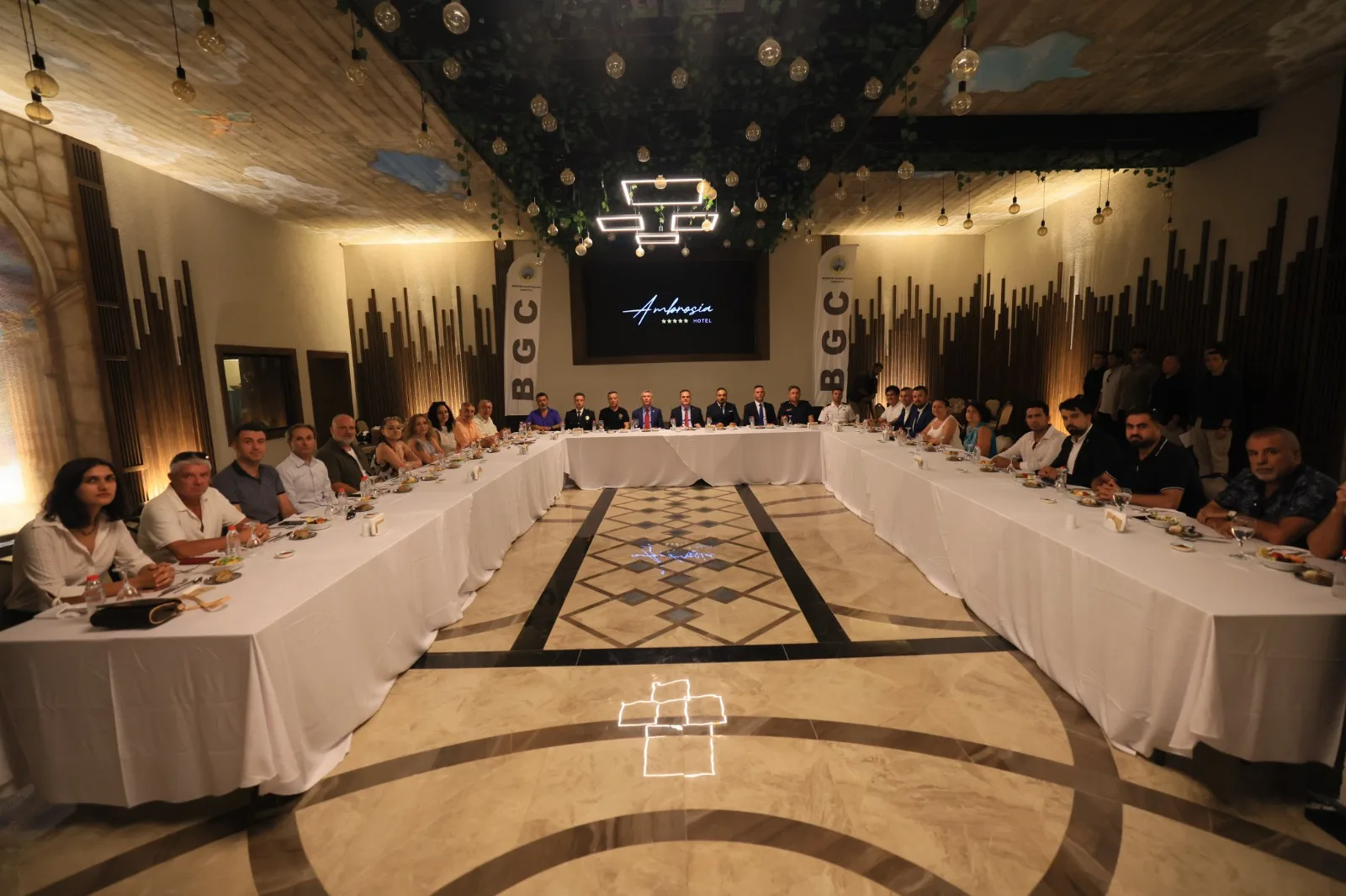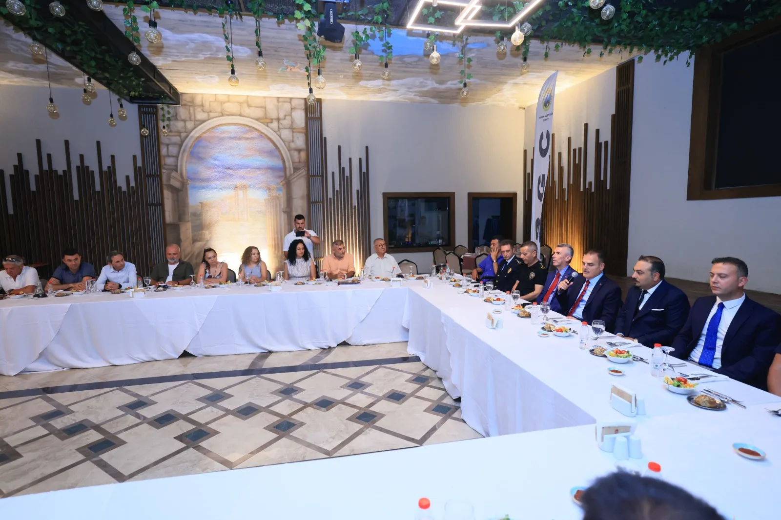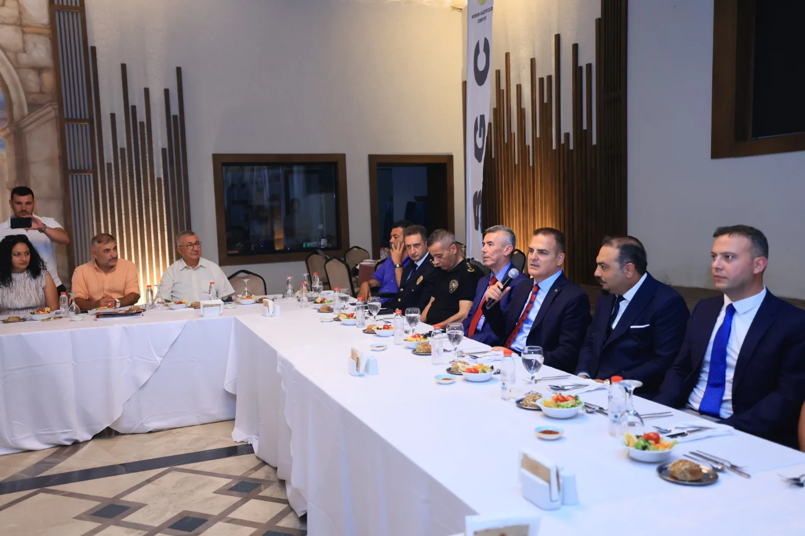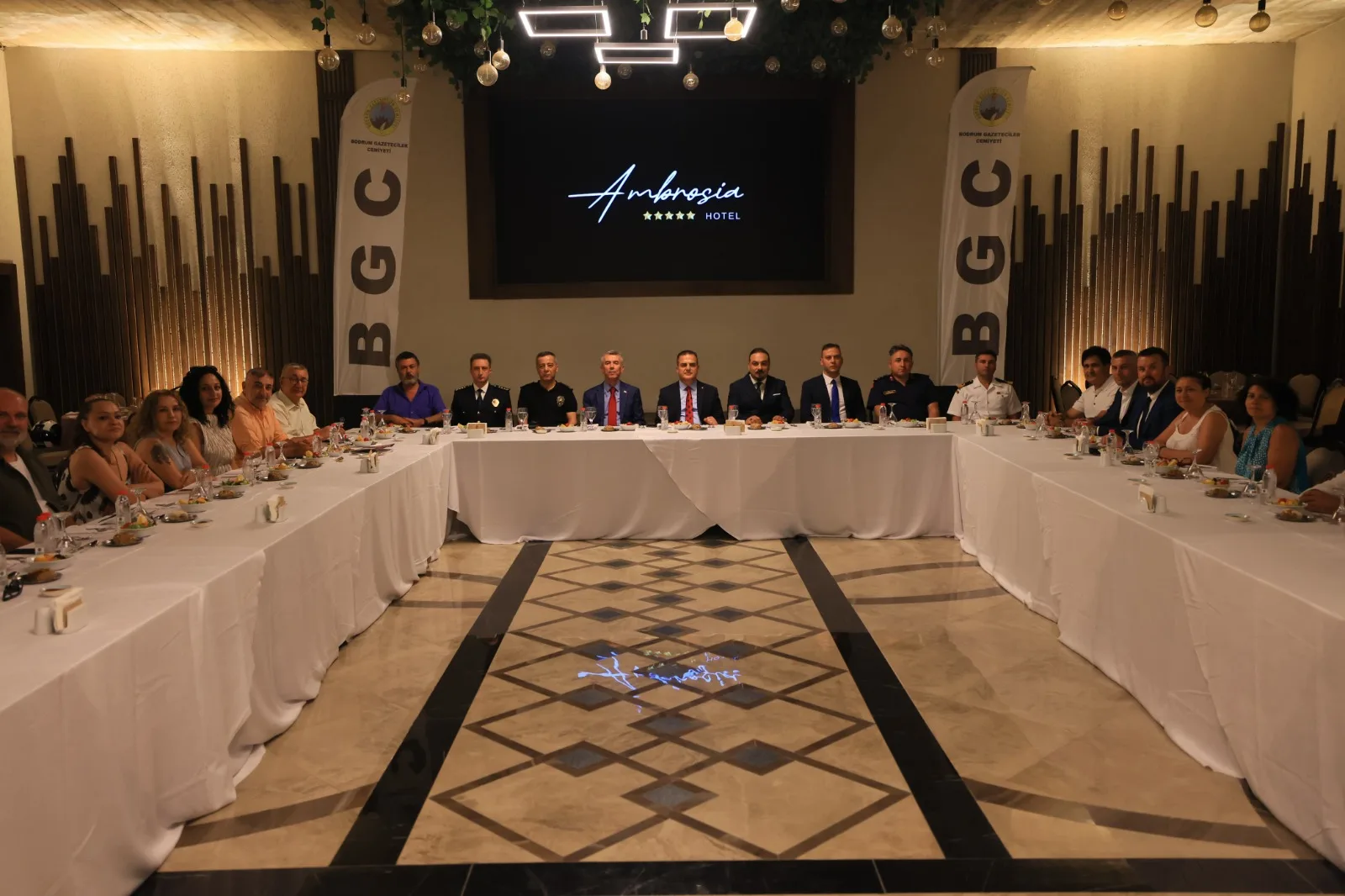 Ambrosia Hotel’in balo salonunda düzenlenen yemeğe, Muğla Valisi İdris Akbıyık, Muğla İl Emniyet Müdürü Ali Canbolat, Bodrum Kaymakamı Ali Sırmalı, Bodrum İlçe Jandarma Komutanı Yarbay Gökhan Kurgan, Bodrum İlçe Emniyet Müdürü Mehmet Darendeli, Sahil Güvenlik Bodrum Karakol Komutanı Binbaşı Raşit Gödelek, Bodrum Gazeteciler Cemiyeti Başkanı Eren Ayhan, turizmci Zeynel Kılıç ve çok sayıda cemiyet üyesi gazeteci katıldı. Programda ilk olarak Bodrum Gazeteciler Cemiyeti Başkanı Eren Ayhan kısa bir açılış konuşması yaptı. Ardından Kaymakam Ali Sırmalı ve Muğla Valisi İdris Akbıyık da katılımcılara hitap etti. Konuşmaların ardından gazeteciler tek tek kendilerini tanıtarak Vali Akbıyık’a çeşitli konularda sorular yöneltti. Vali Akbıyık, Bodrum ve Muğla’ya ilişkin soruları detaylı şekilde yanıtladı.